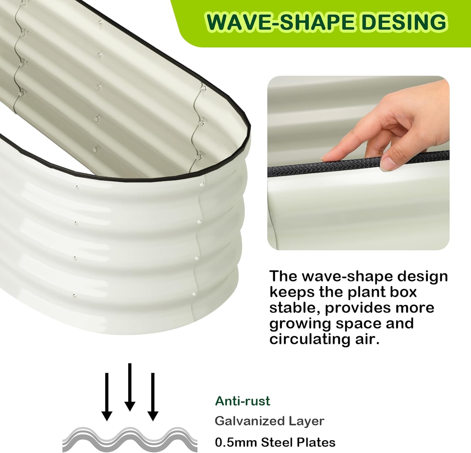 2 Pcs 4.5x2x1.5ft Oval Raised Garden Bed,Galvanized Raised Beds,Open-Ended Base Metal Raised Planter Beds,Garden Bed Outdoor,Planter Raised Boxes for Vegetables,Flowers,Tool-Free Asse,White