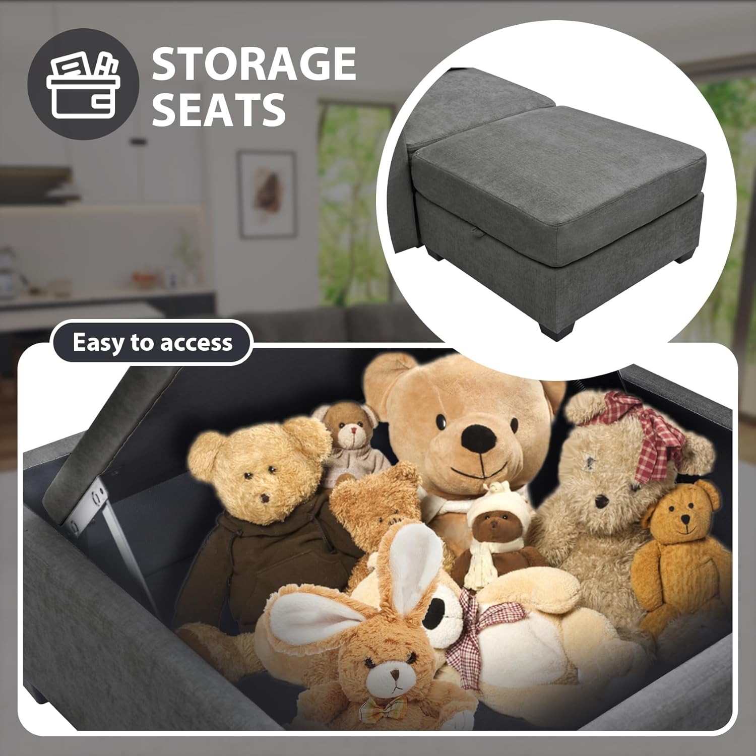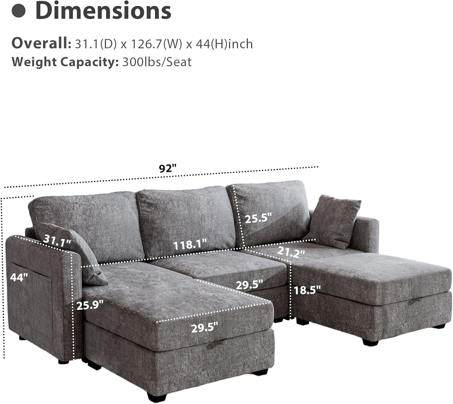 - Hidden Chaise Storage: Discover hidden convenience with our chaise lounge featuring discreet storage. Perfect for stowing away blankets, pillows, or other essentials, combining comfort with clutter-free living.