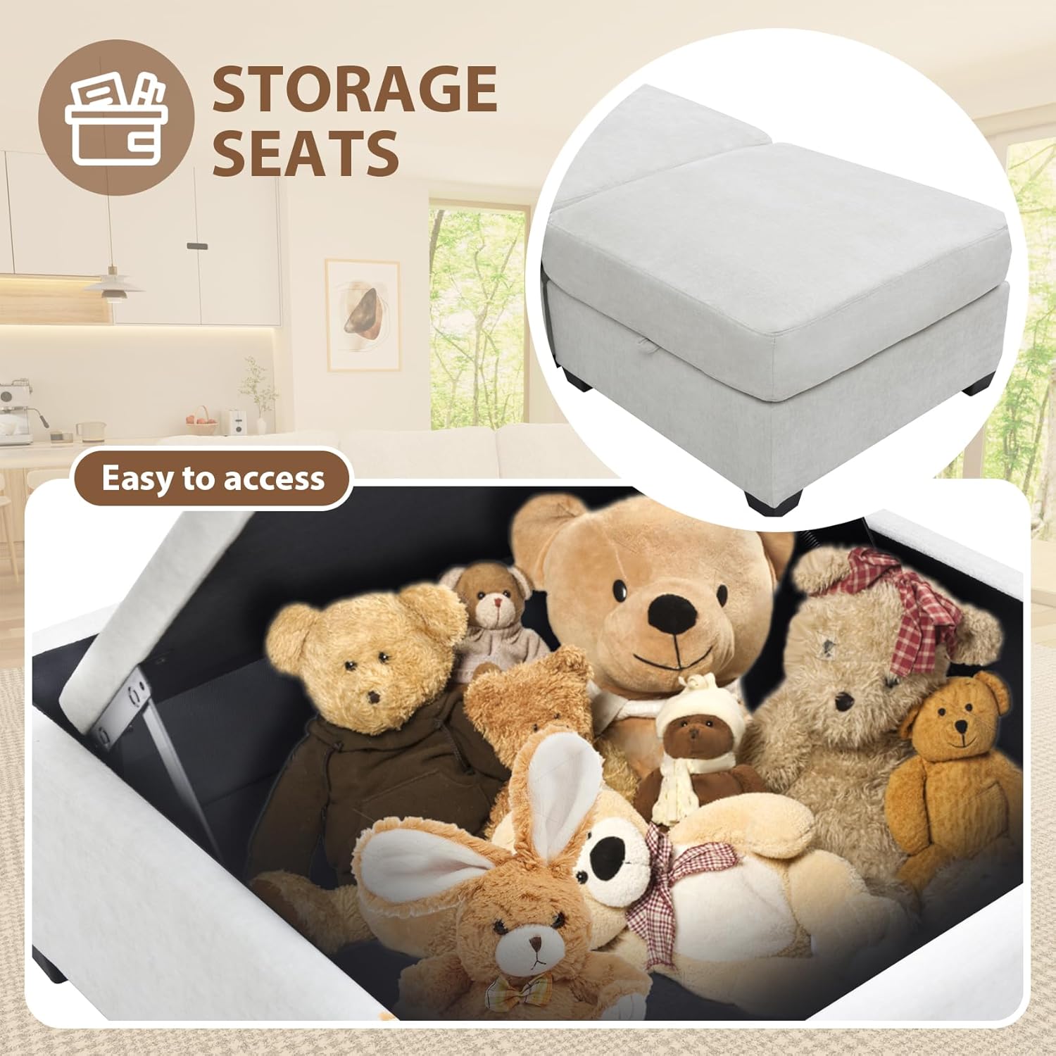 mestyl Modular Sectional Sofa Convertible U Shaped Sofa Couch Set with Storage for Living Room, Modern 4 Seater Modular Sectional Couch with 2 Movable Ottoman (Beige)
