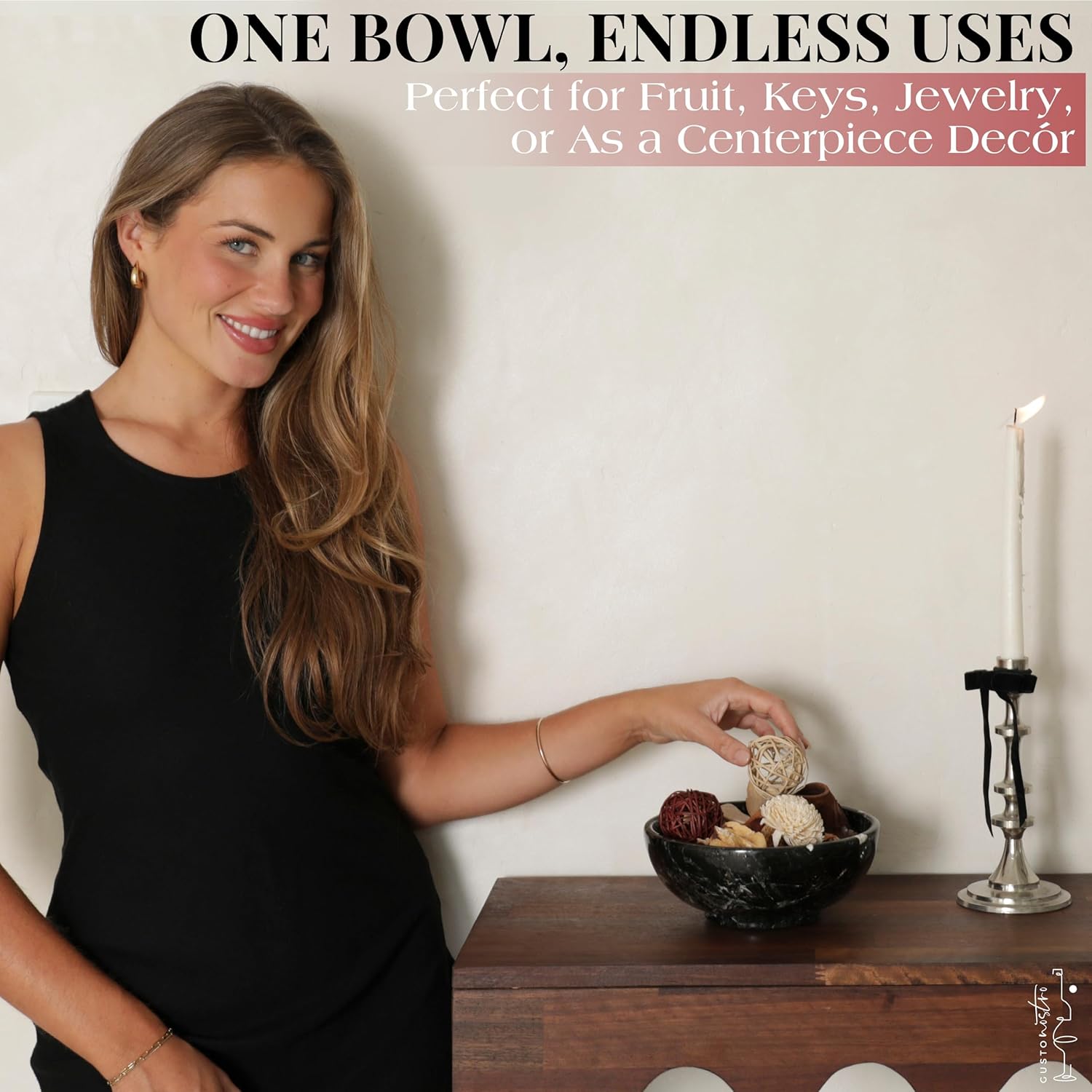 - Premium Marble Tabletop Accent: Carved from natural marble and weighing nearly 4 lbs, this black decorative bowl feels as solid as it looks. The felted base keeps it secure and scratch-free, so you can place it anywhere with confidence