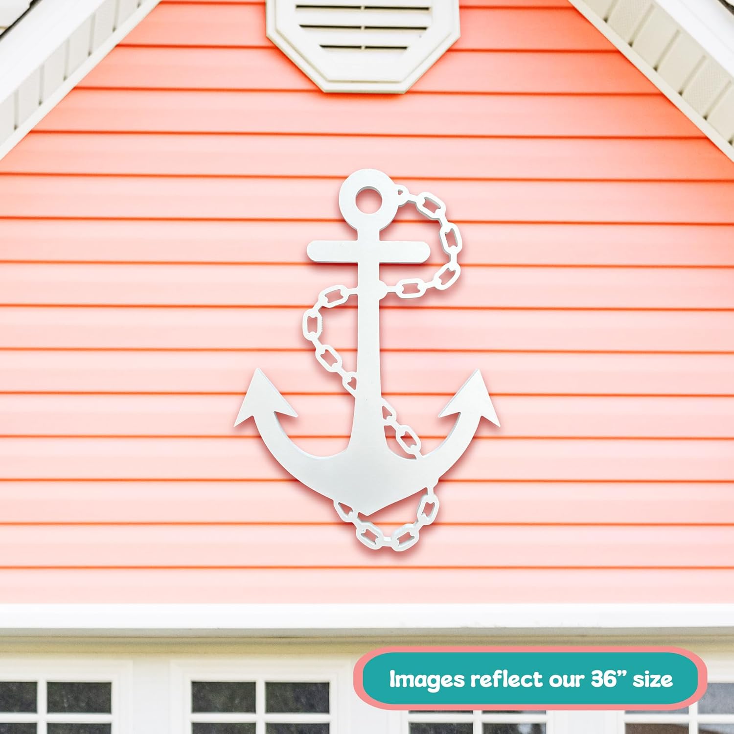 Outdoor Anchor Wall Decor, Nautical Beach House Sign, Weatherproof PVC Anchor with Chain, Ocean Marine Art for Indoor Outdoor Use, 2 Foot