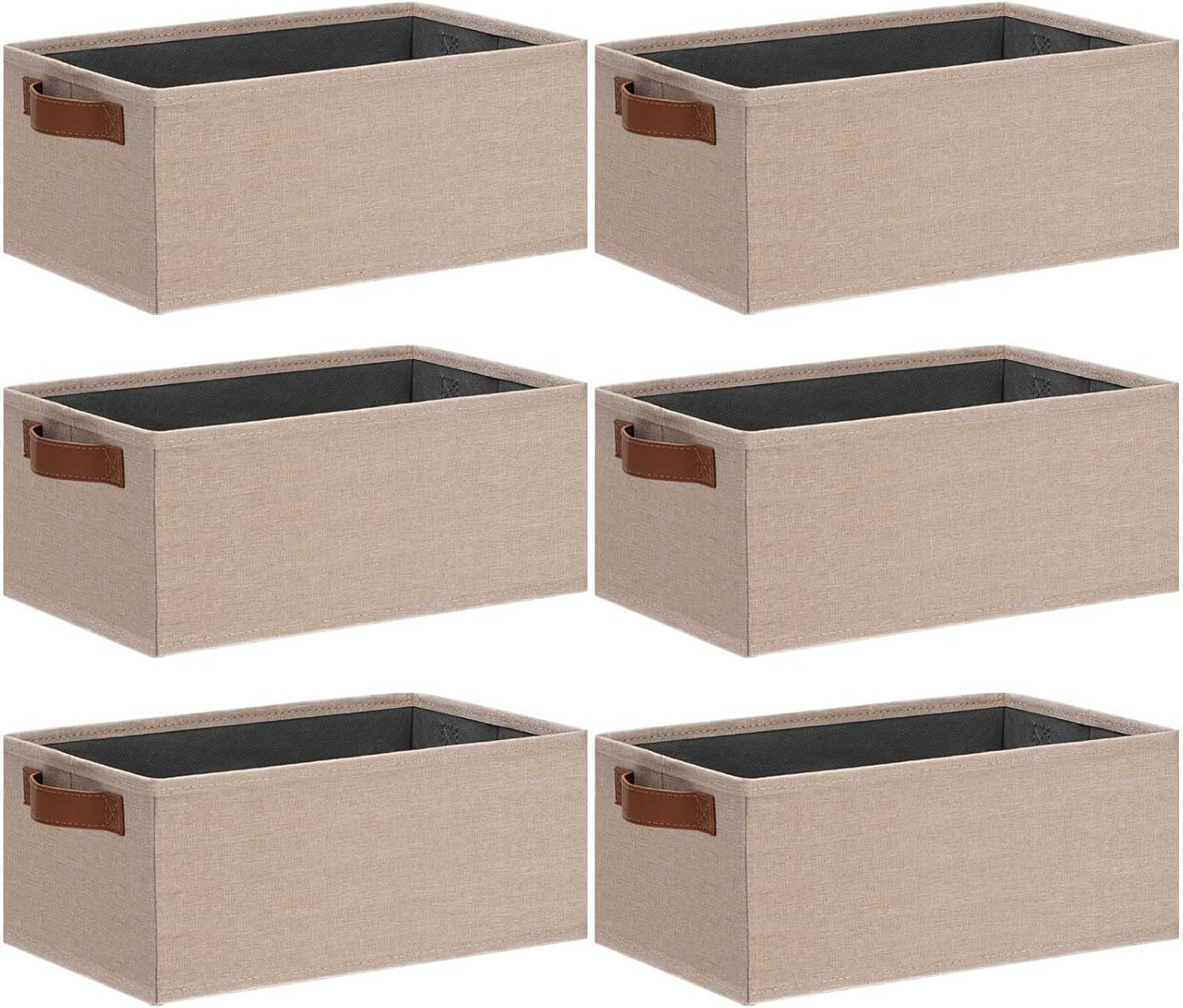 GhvyenntteS Small Fabric Storage Bins 6 Pack, 11.8" x 7.87" x 5.11" Storage Basket with Leather Handles, Closet Storage Bins for Shelves, Storage Baskets for Shelves, DVD Storage (Beige Yellow)