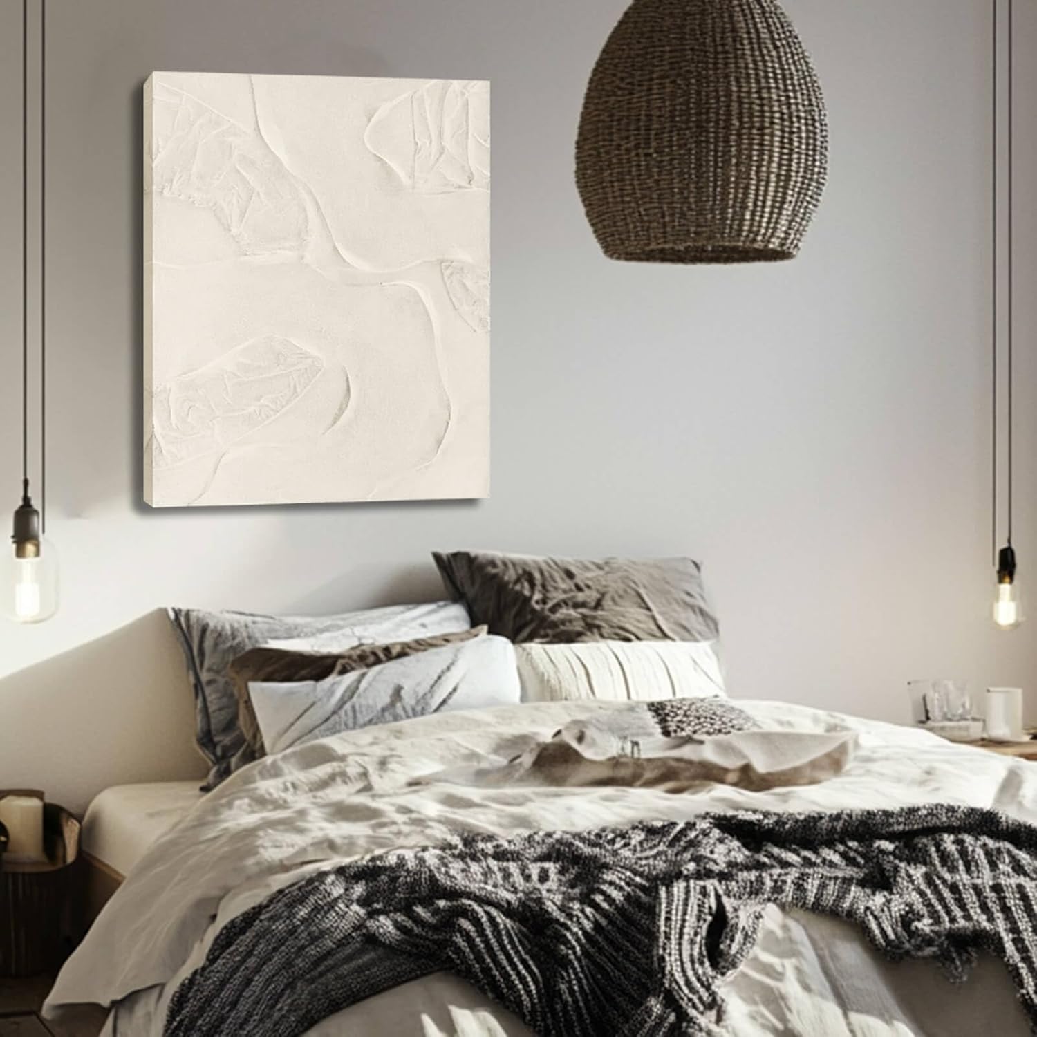 CHUDANHAO Beige Oil Paintings Textured Canvas Pictures Line Wall Decor Paintings 32"x40" Large Pictures for Living Room Bedroom Hotel