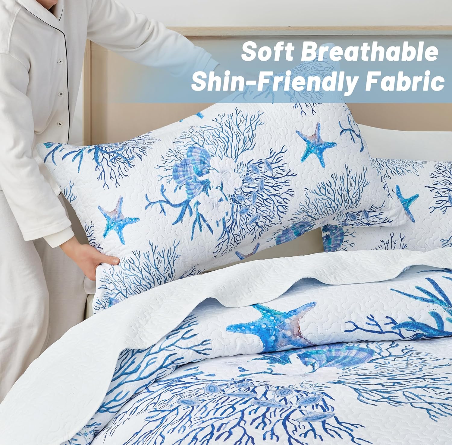 - 【Coastal Design】 Coastal bedding nautical ocean pattern quilt, coastal patchwork quilts set creating a beach atmosphere and making your eyes shine. Light up your bedroom, guest room,vacation room with vivid and stylish coastal quilt bedding set.
