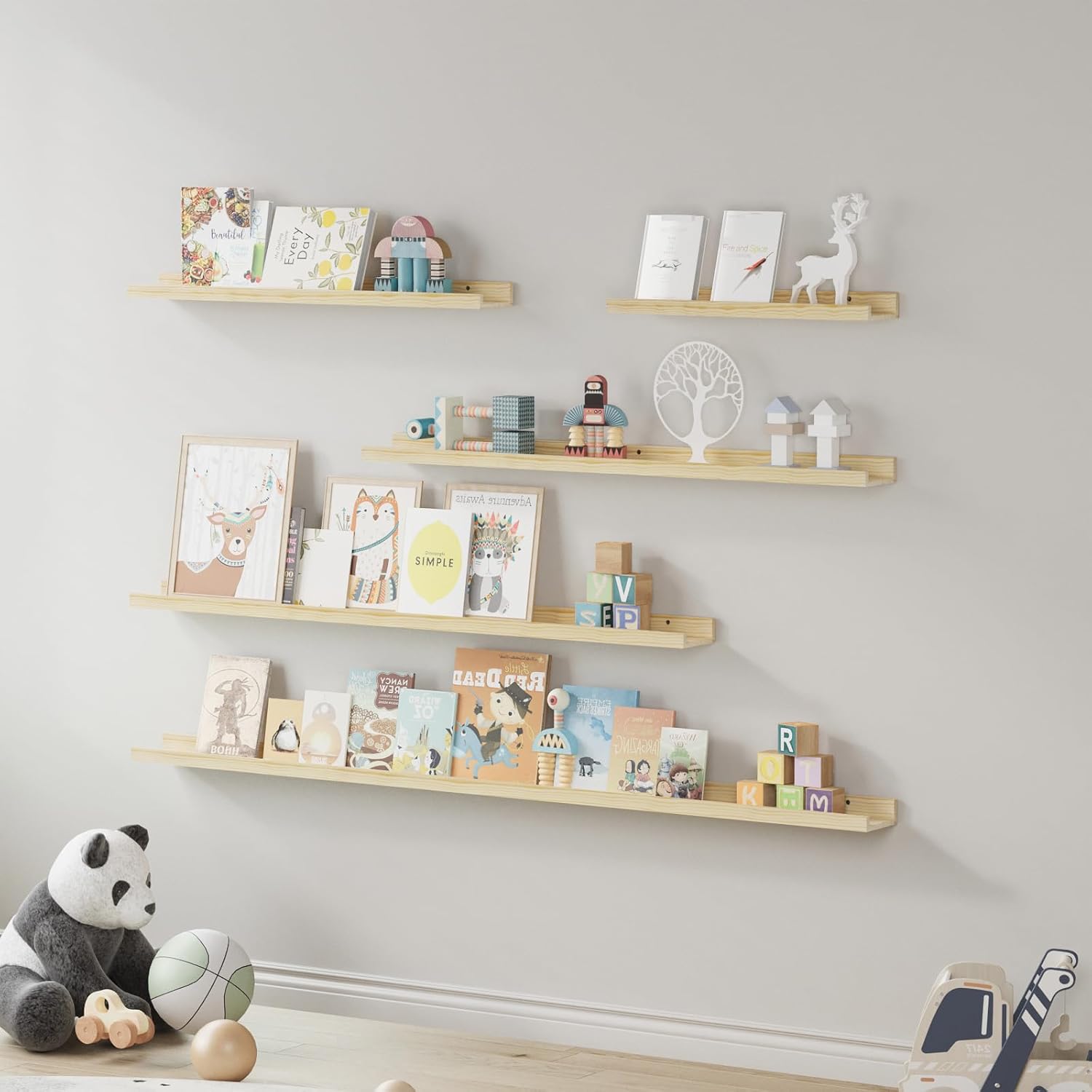 - Solid Wood Wall Shelves: These floating shelves are crafted from pine, which is sturdy and sustainable real wood, ensuring sturdiness and longevity to support various items without warping or sagging