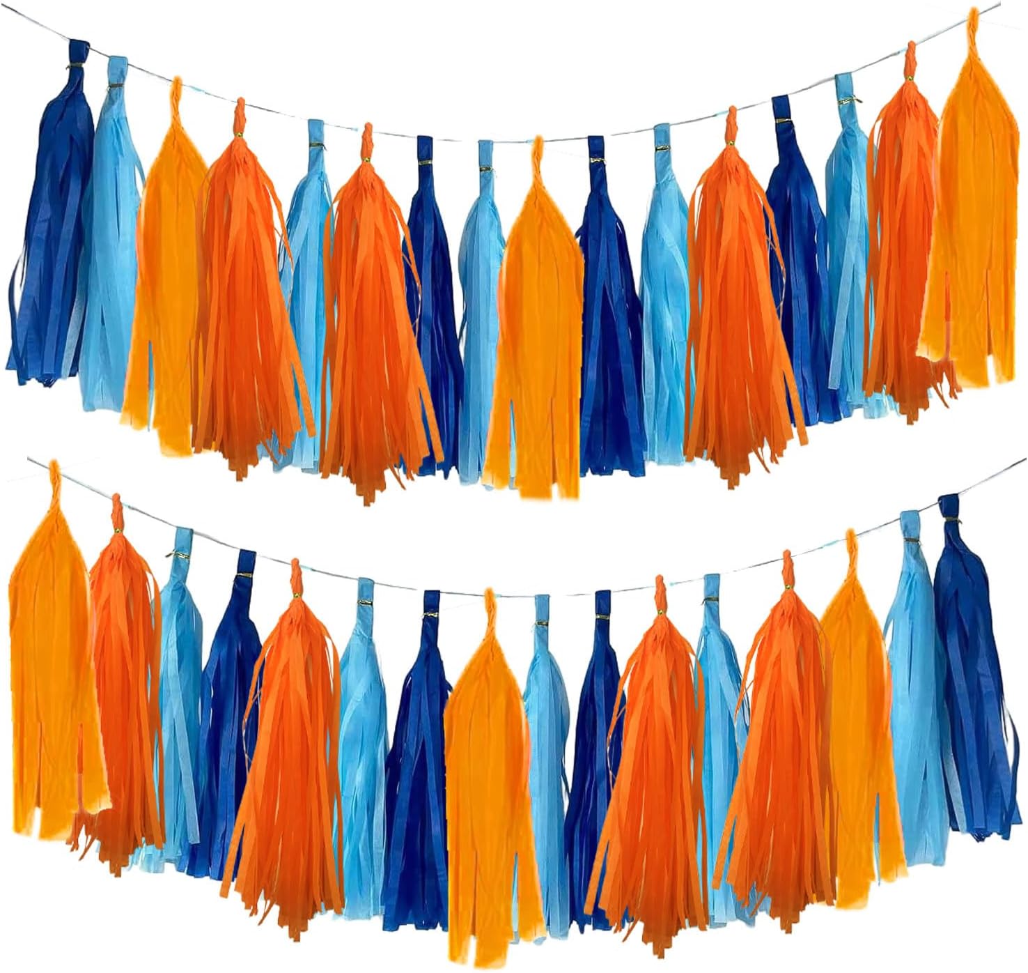 Blue and Orange Tassel Garland,Tissue Tassel Banner for Party Decorations,Navy Blue,Sky Blue,Orange,Light Orange,Pack of 20