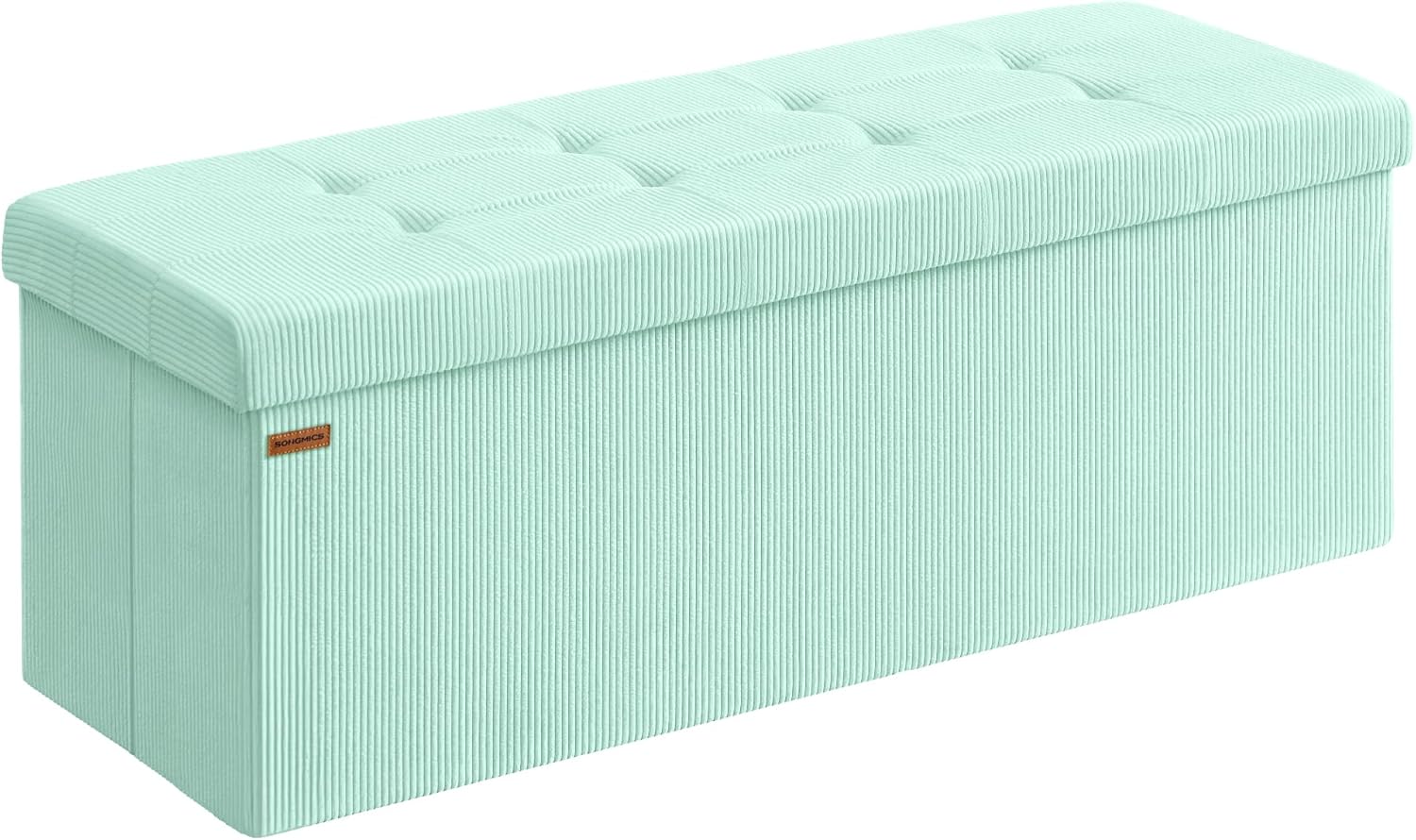 SONGMICS MAZIE Collection - Storage Ottoman Bench, Foldable Foot Rest, 15 x 43 x 15 Inches, End of Bed Bench, Storage Chest, Load 660 lb, Living Room, Bedroom, Entryway, Moonlight Green ULSF604C01