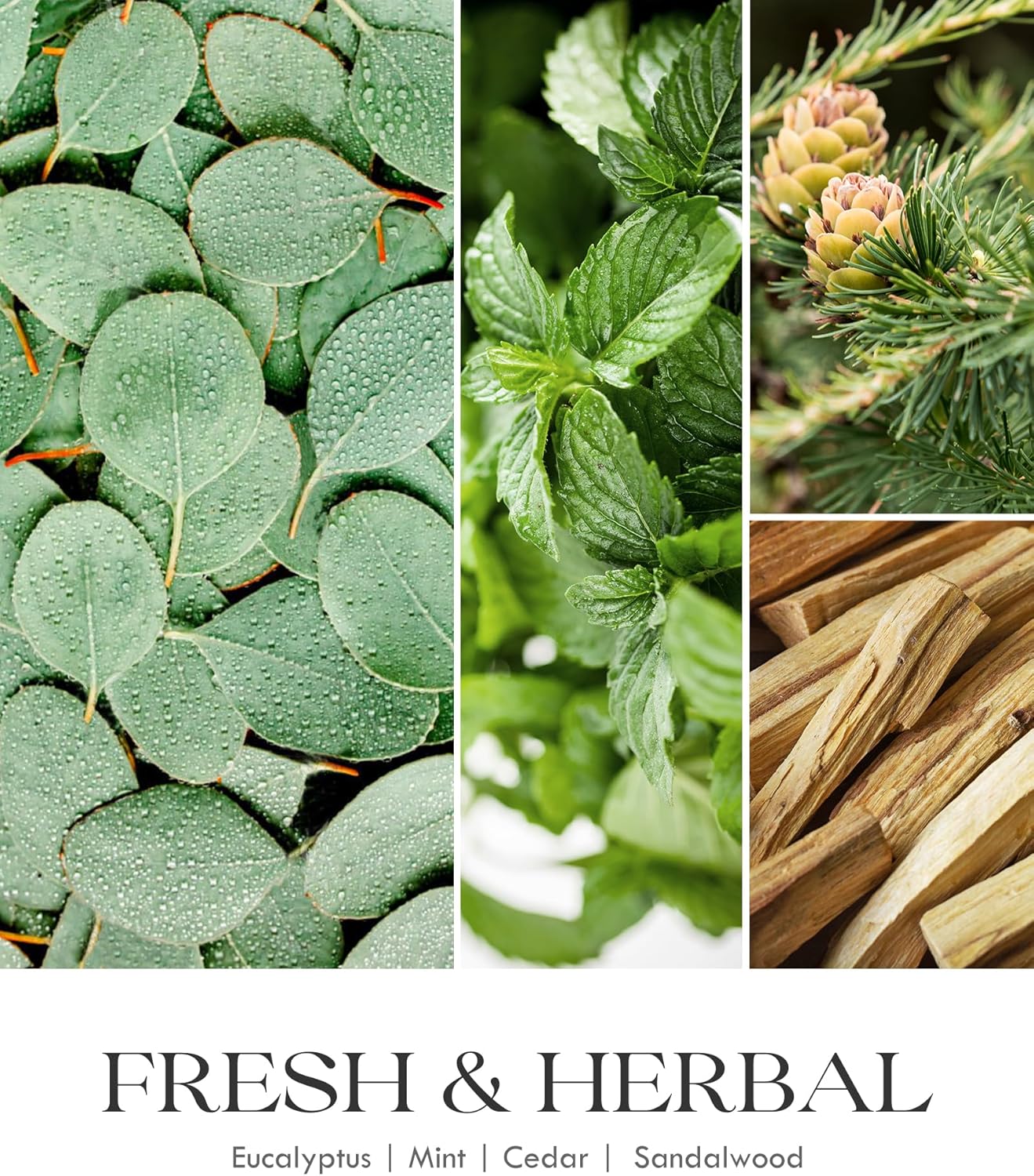 - HIGHLY SCENTED EUCALYPTUS Mint CANDLE: Immerse yourself in the crisp, herbal freshness of our Eucalyptus Mint scented candle. Bright top notes of bitter orange leaf, bergamot, and cool mint awaken the senses, while a soothing heart of eucalyptus, linden blossom, and magnolia brings balance and calm. Grounded by warm cedarwood, lavender, and sandalwood, this clean, nature-inspired fragrance evokes the feeling of a peaceful walk through a sunlit forest—refreshing, relaxing, and deeply restorative