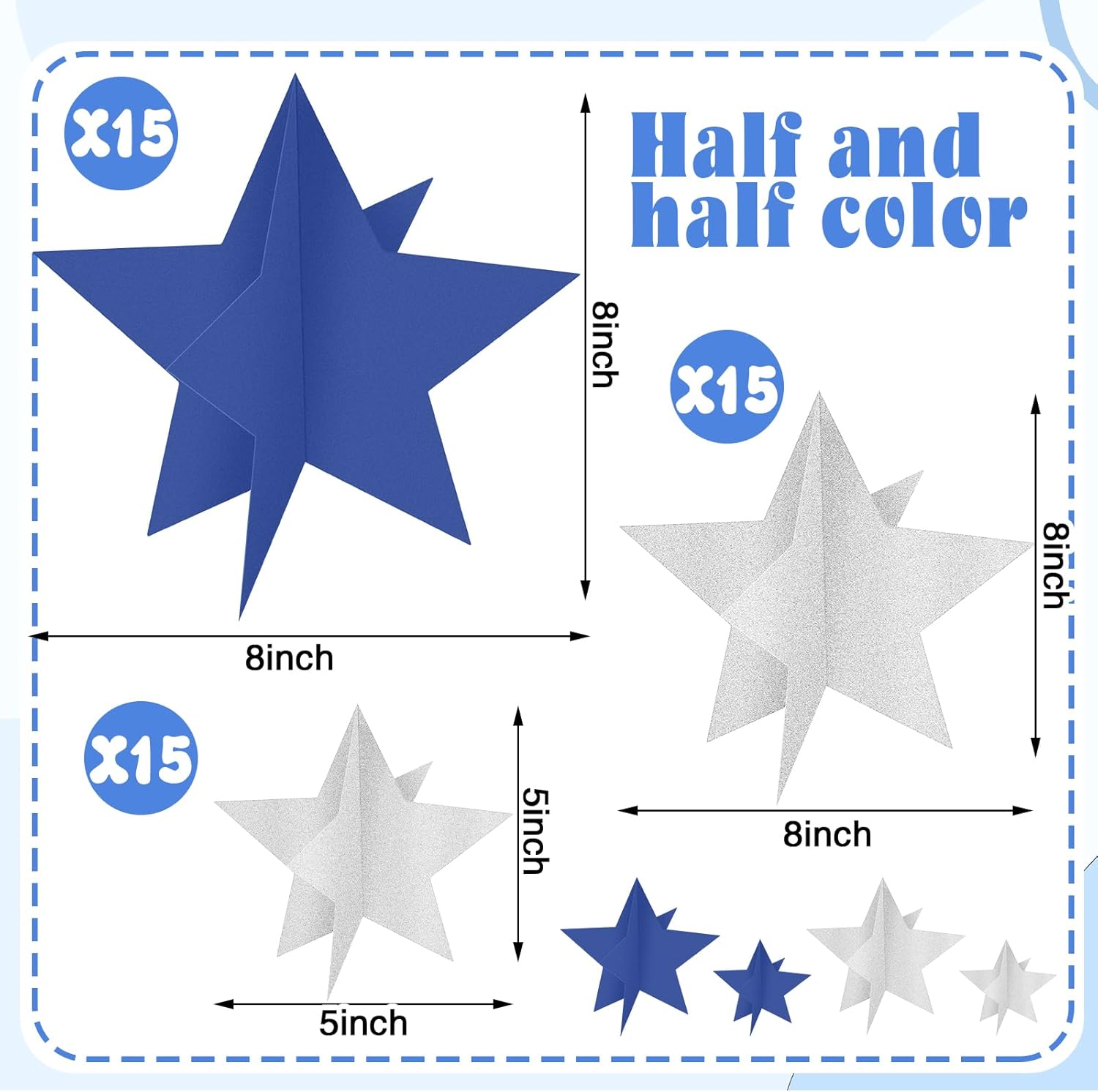 • Package Includes: the package contains 45 pieces of 3D star party table decorations in 3 size include 15 pcs 8 inches, 15 pcs 5 inches, 15 pcs 3 inches, that you can assemble and decorate yourself by DIY, matching the color scheme and theme of your event