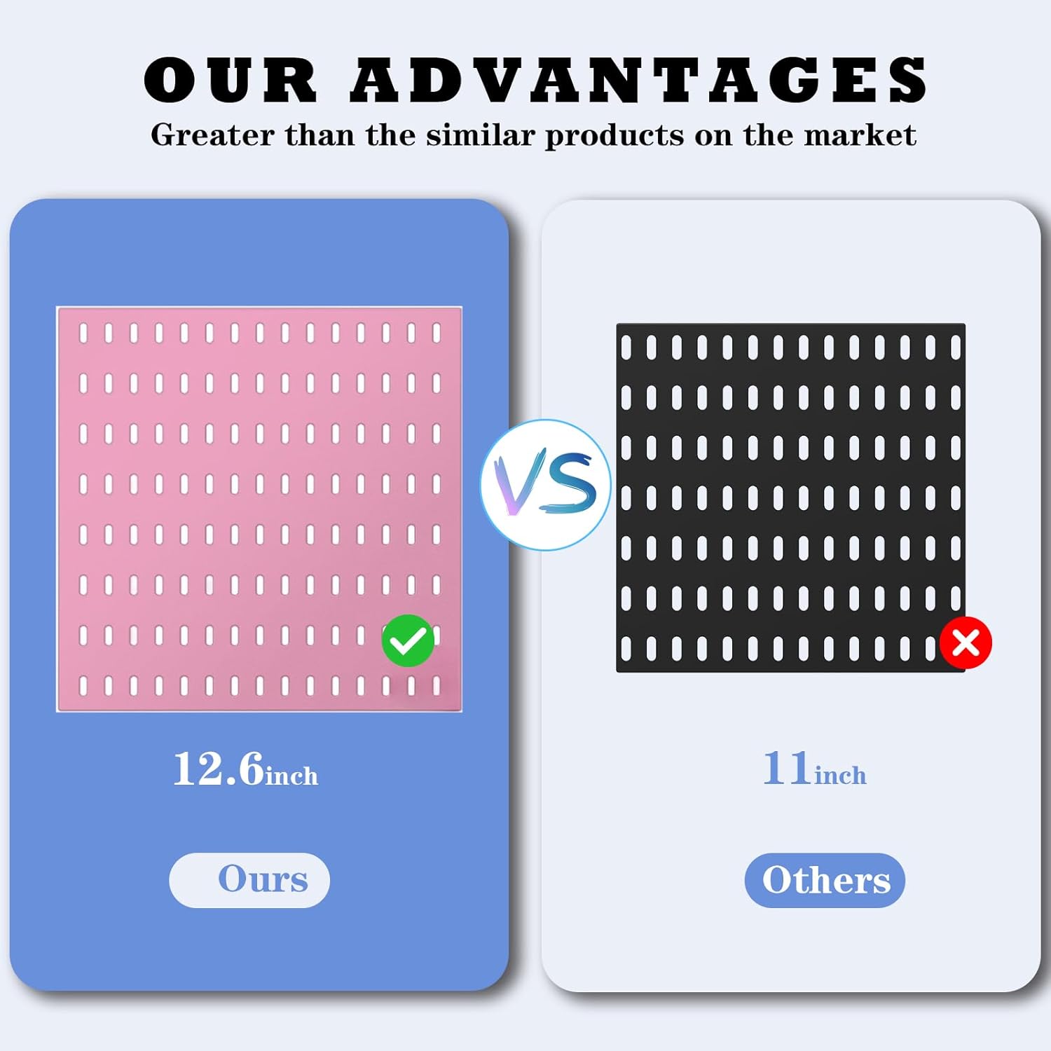 - Cost-Effective: This Pegboard Combination Kit is adjustable and removable. This new set is12.6"X12.6", bigger than the formal 11”X11”. The 20 accessories show more cost-effective than the formal 16 accessories
