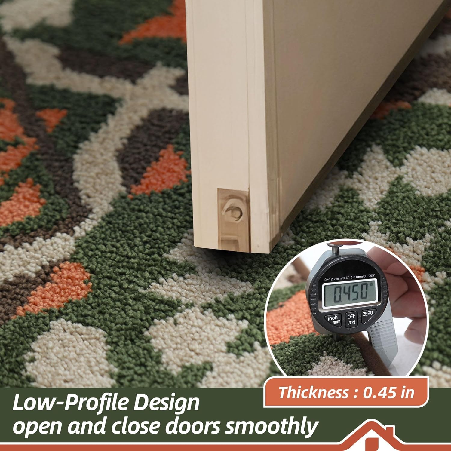 - Stylish and Low Profile Design: Boho geometric floral patterns are suitable for most kinds of home dรฉcor. Our doormats measure 24" x 36" x 0.45", low-profile design and reinforced overlock edges to ensure that doors won't get stuck or the door rug go curling. Note: Please confirm the height of the door gap before purchasing