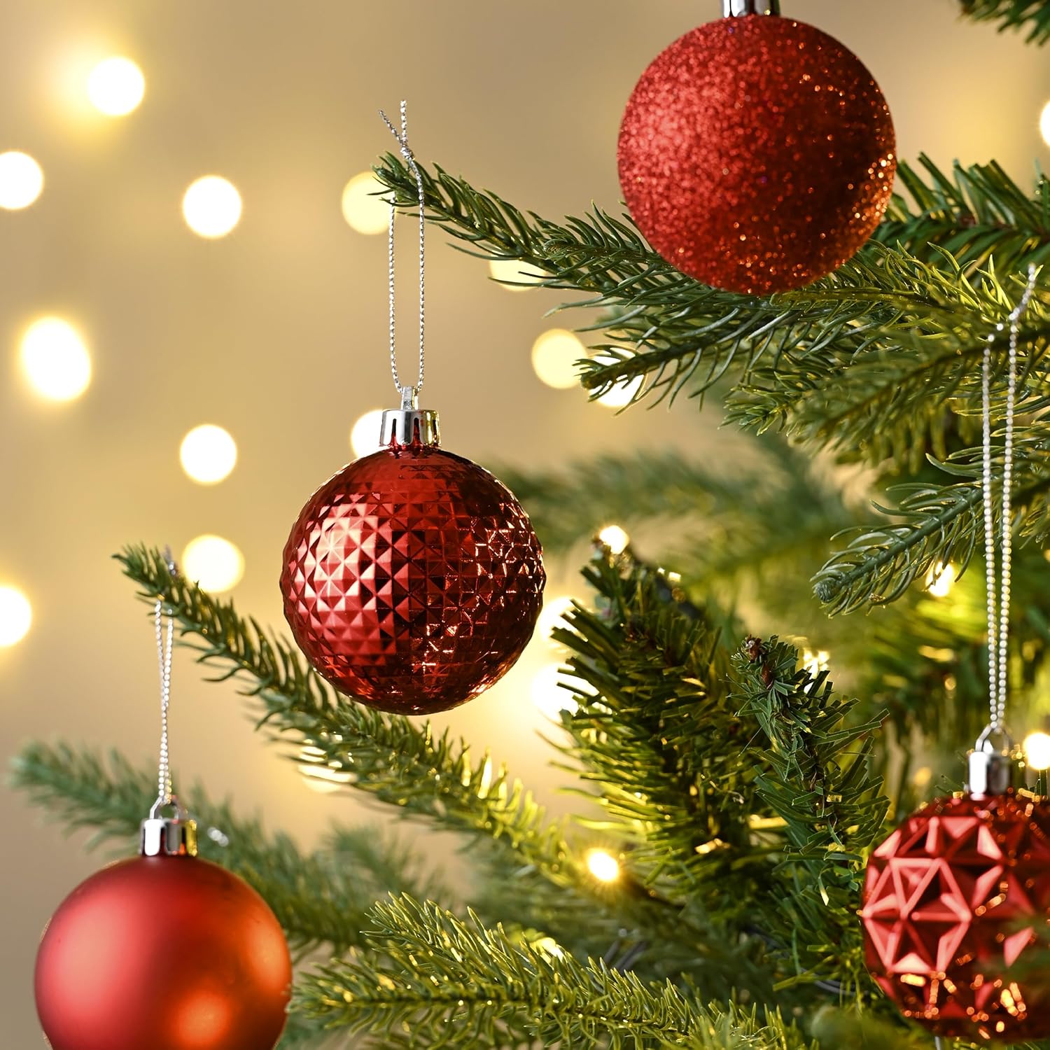 - 【Package and Size】This ornament ball set include 50pcs Christmas ornaments measuring 2 inches in diameter, featuring seamless connections for a polished look