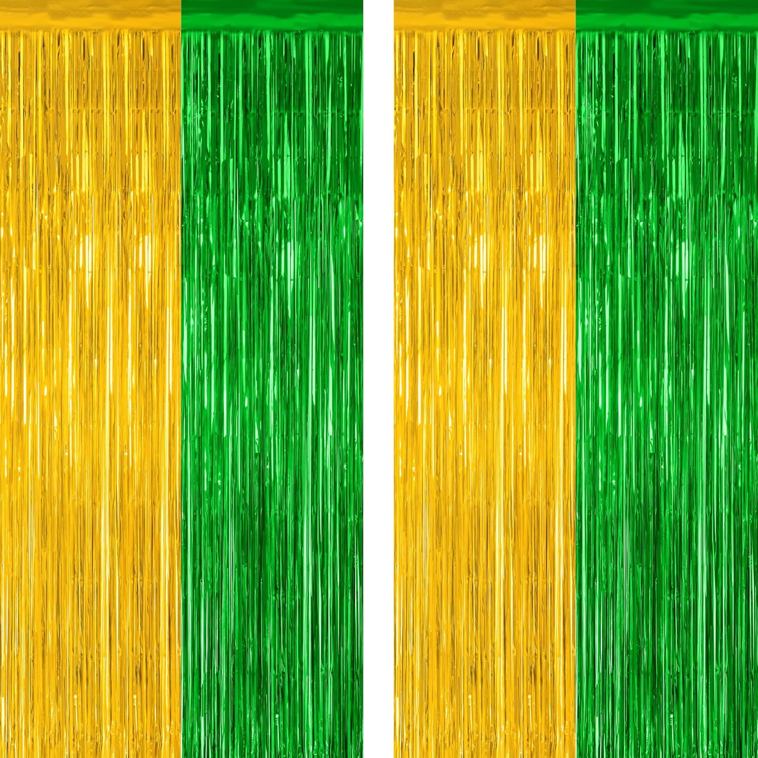 - Package Includes: You will receive 2 pcs green and gold backdrop, each party streamer is 3.28 ft x 7.05 ft, it is long enough to be cut to your desired size, suitable for doors, windows, tables and many other places.