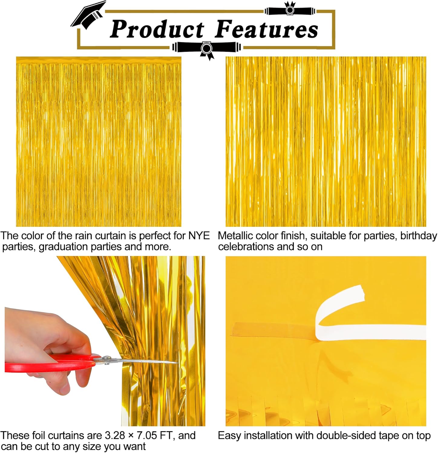 - Design: Each prek graduation backdrop presents a gold color with a reflective metallic finish, suitable for your graduation decorations.