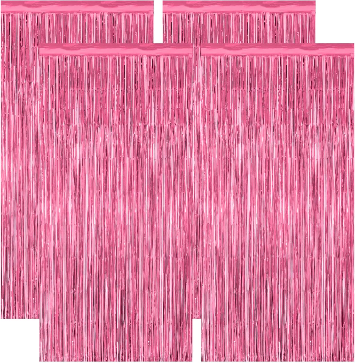 4 Pack Birthday Decorations, 3.28 FT x 7.05 FT Pink Backdrop, Metallic Happy Birthday Backdrop Fringe Curtains Party Streamer, Bachelorette Party Decorations Princes Birthday Party Decor