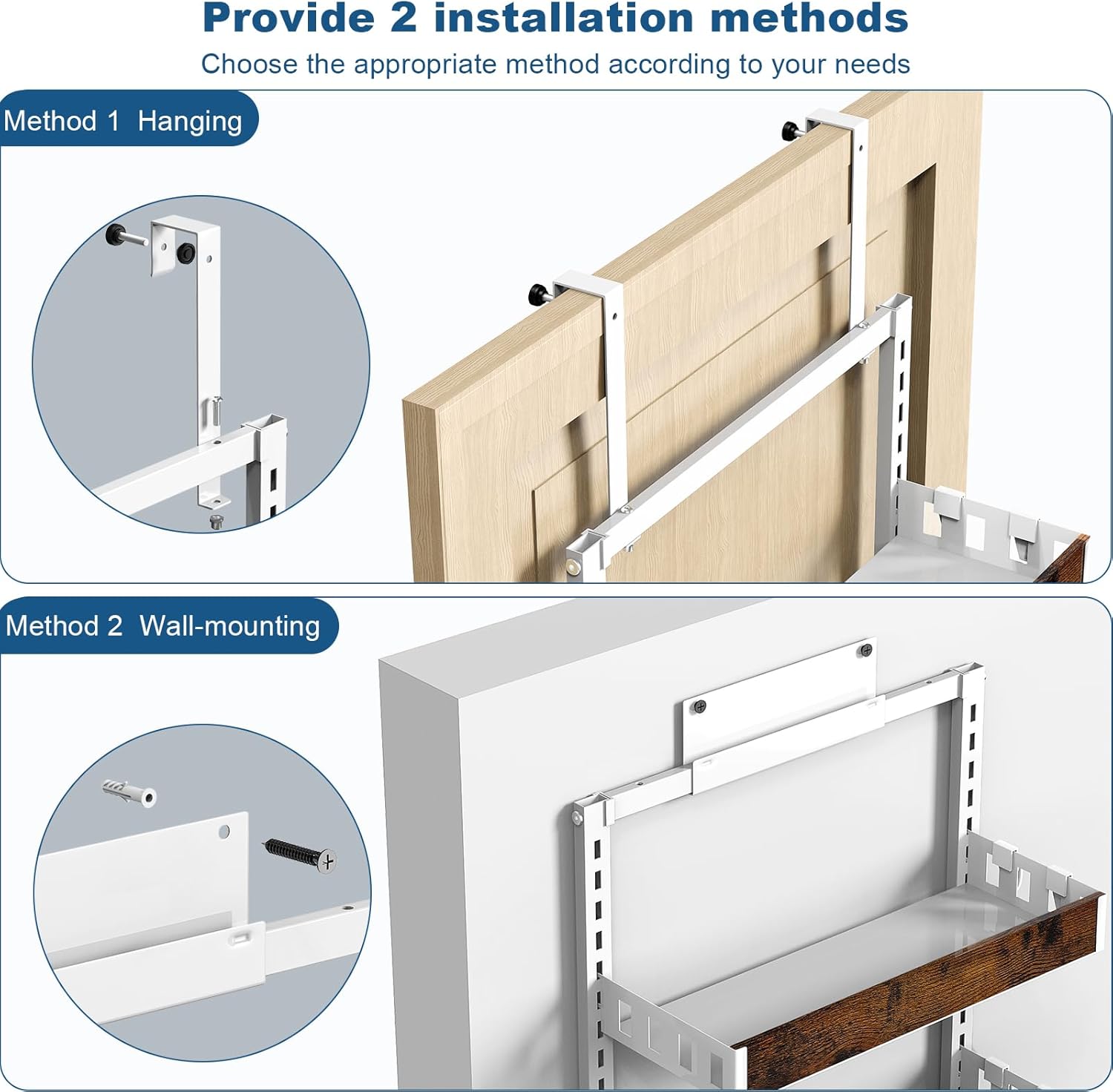 bukfen Over the Door Pantry Organizer, 8-Tier Adjustable Wooden Basket Kitchen Pantry Door Organization and Storage, 2 in 1 Wall Mount or Hanging Heavy-Duty Metal Hanging Kitchen Spice Rack,White