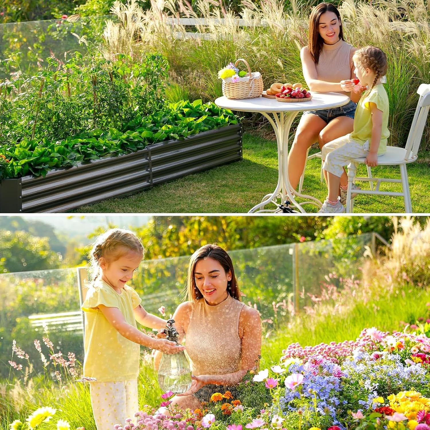 - Stable and Solid Construction: Double card frames on the two sides of the sheet make the raised garden kits more durable and stable, and 4 reinforcing rods make the whole raised garden bed more stable. Never worry about its distortion or collapse and it presents a much more beautiful design.