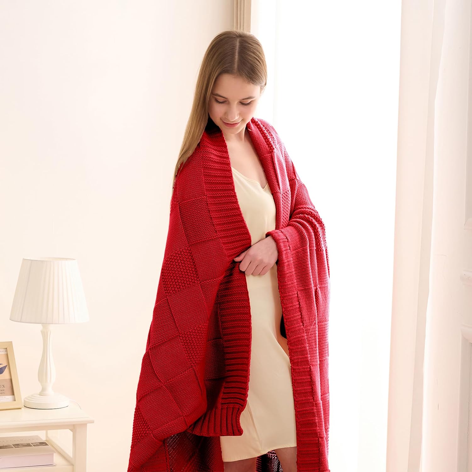 - DESIGN & STYLISH:The checkerboard pattern integrated with seed-stitch knit looks more classic and cute.This unique design gives the throw blanket a homespun look that's relaxed and inviting.This knit design is equally soft and chic, keeping you warm in style. It will look amazing draped over any couch or over the end of a bed to provide that sumptuous cozy look