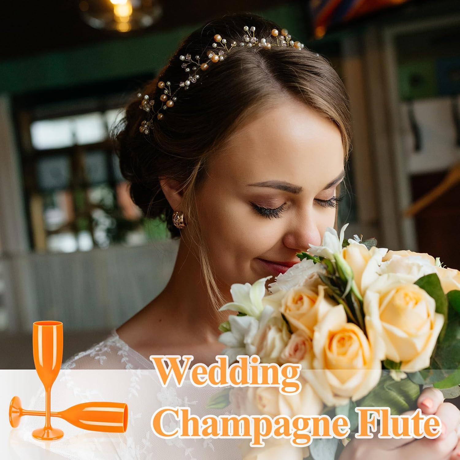 XUWAIDSGN Acrylic Champagne Flutes Toasting Glasses Unbreakable Mimosa Bar Reusable Wine Glasses Vintage Champagne Flutes Stemmed Drinking Cups 5.4 OZ for Christmas Birthday (10, Orange)