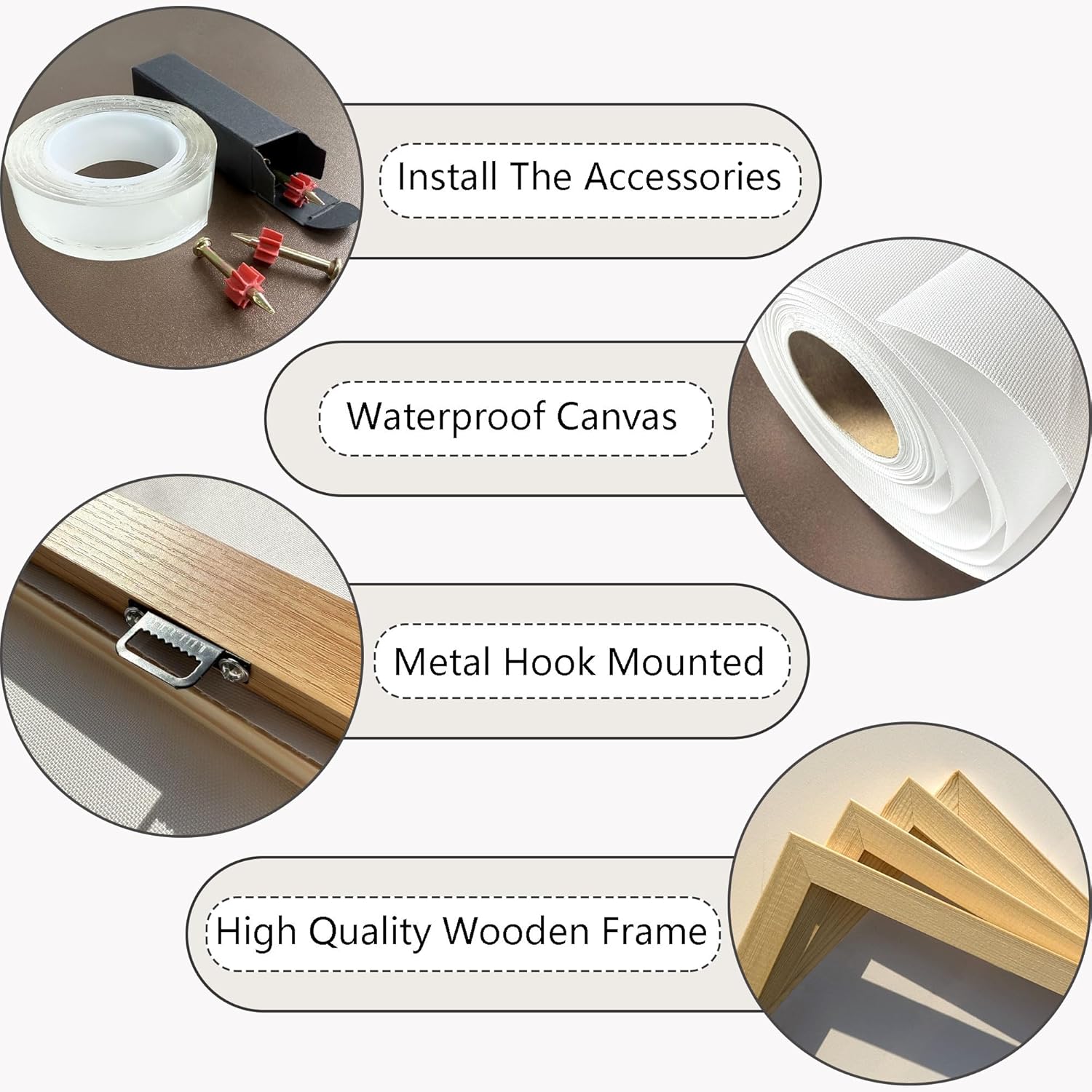 - Wall Art for Living Room:Stretched over a solid wood frame, it comes with pre-installed hooks for quick and effortless hanging.