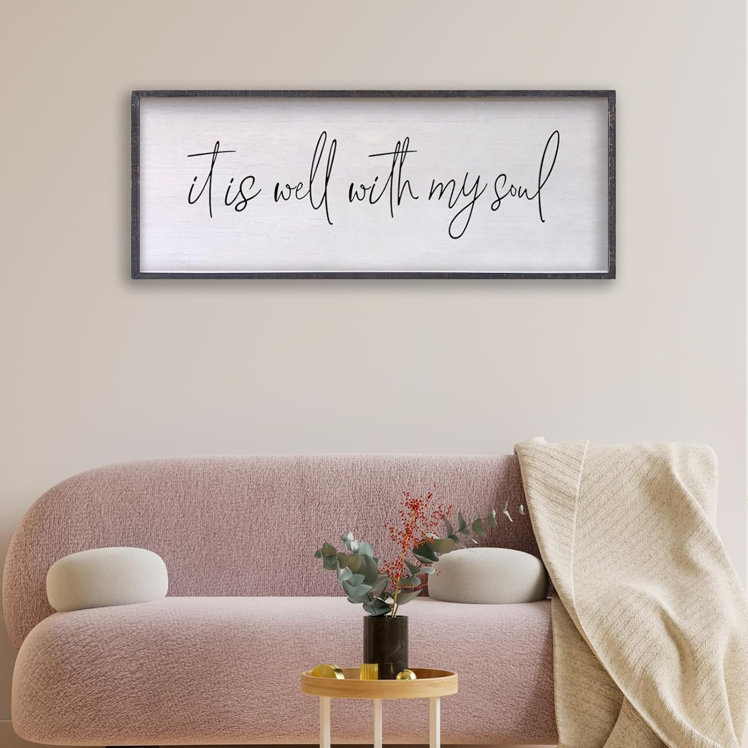 It Is Well With My Soul Wall Decor 32"x12" Bible Verse Christian Scripture Wood Framed Art Sign for Master Bedroom Living Room(Black)