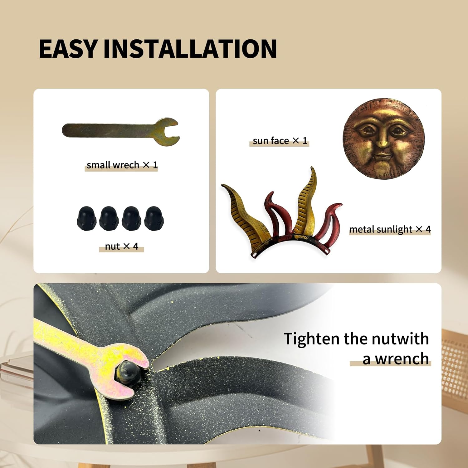 - Easy To Hang - This sun wall decor is designed with a hook on the back, which can be hung together or separately. Sun measures 24" x 24"