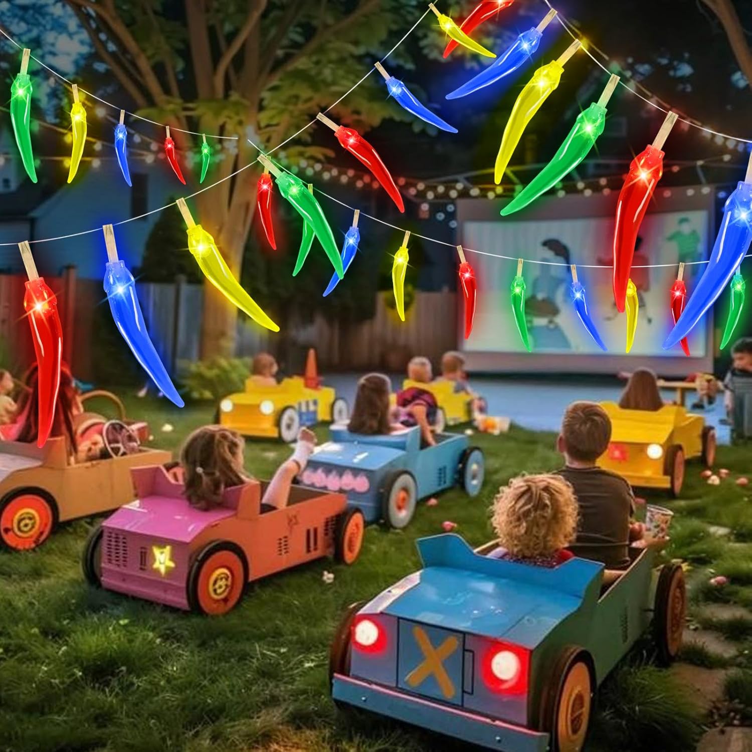 - ๐ถ๏ธ Bright Chili Pepper Lights: 21ft 40 LED Hawaiian party decorations string lights with 4 vibrant colors of chili peppers (red, blue, green, yellow), perfect for bringing a touch of summer to your bedroom, pool party, beach party, or festival decorations. Hang these charming lights anywhere to create a cheerful and lively tropical vibe for your party or family gathering.