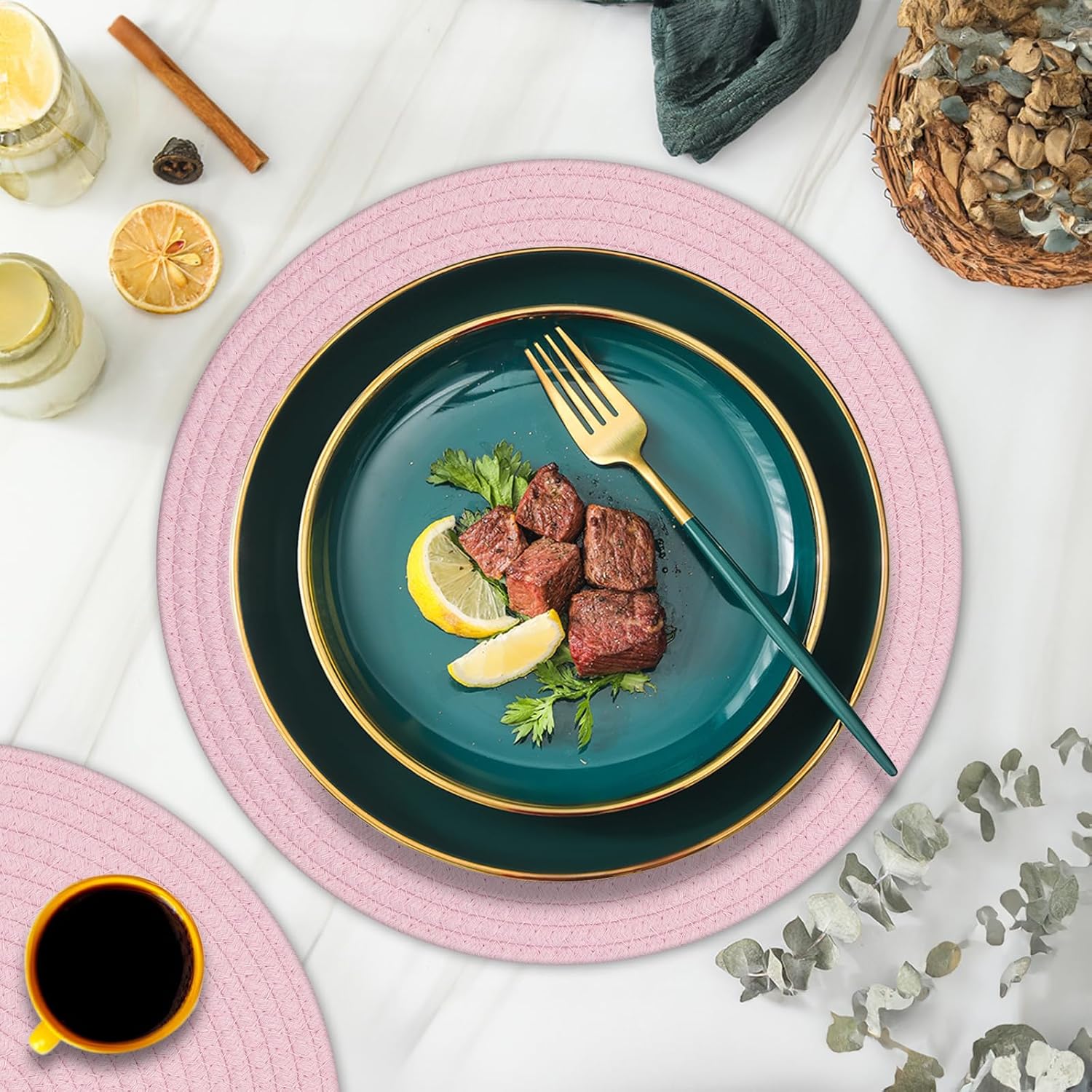 Round Placemats Set of 6, Cotton Rope Woven Table Mats, Hot Pads for Kitchen, Non Slip Heat Resistant Place Mats, 13 Inches Braided Placemat for Farmhouse Decor and Kitchen Table Decor (Pink)