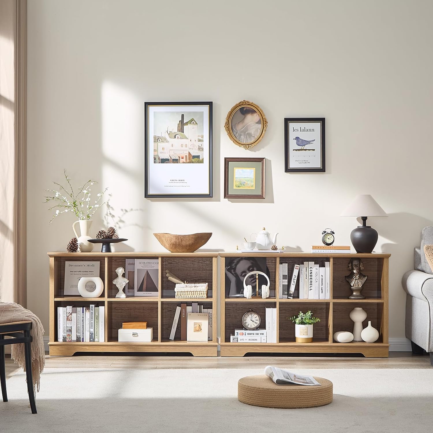 - 6 Cube Storage Space: Our farmhouse-style cube storage bookcase features six spacious compartments, perfect for organizing books, decor, baskets, and more. The rustic X-pattern side panels add a charming touch, seamlessly blending with our existing furniture collection to create a cohesive home decor set. Ideal for living rooms, bedrooms, offices, or closets, this bookcase combines functionality with timeless design