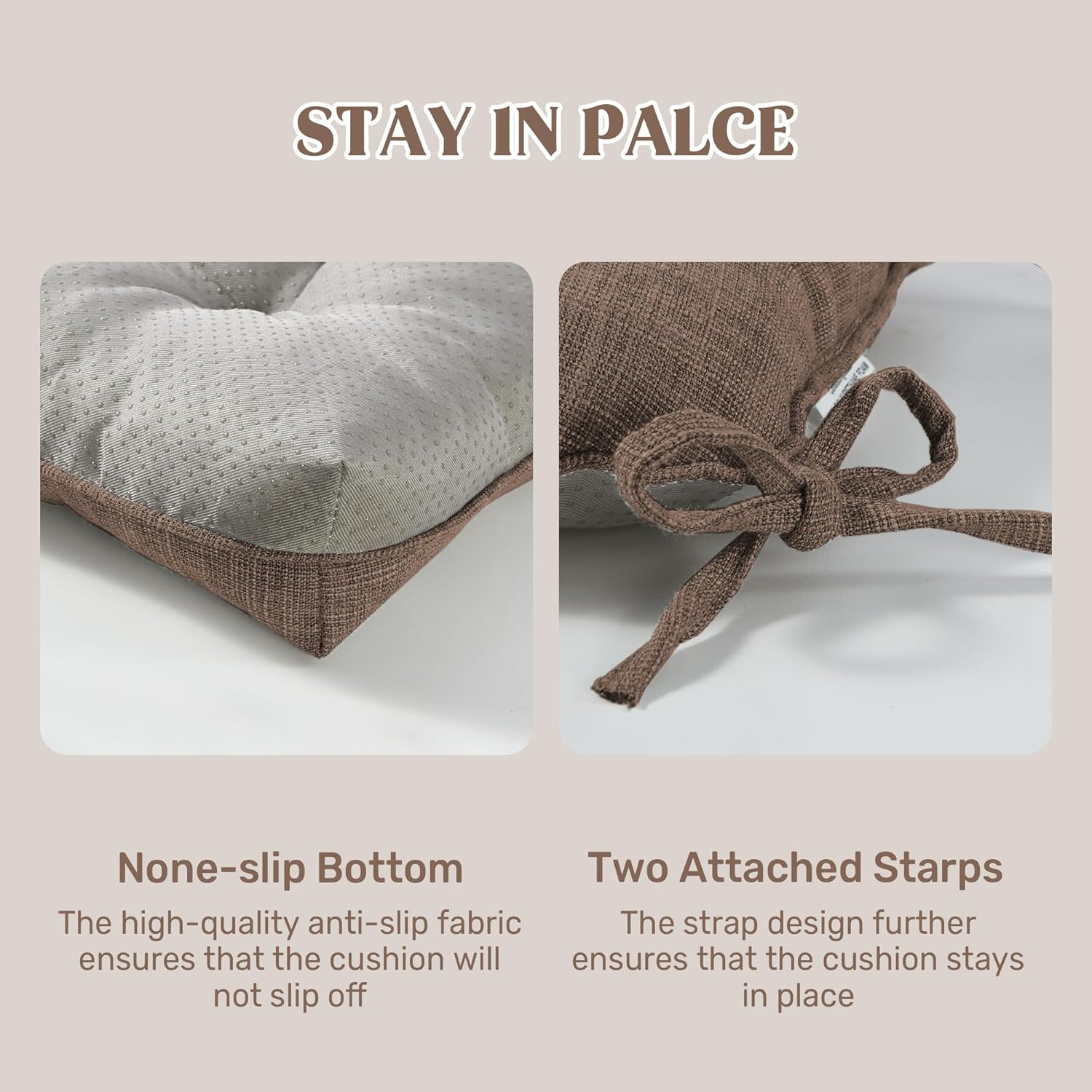 - Secure & Non-Slip Design: Featuring a non-slip bottom and adjustable straps, this cushion stays firmly in place on any chair, preventing unwanted slipping and shifting. The added security means you can enjoy a stable seating experience without constant adjustments. Plus, with multiple packs available, you can easily upgrade several chairs at once for a coordinated look.