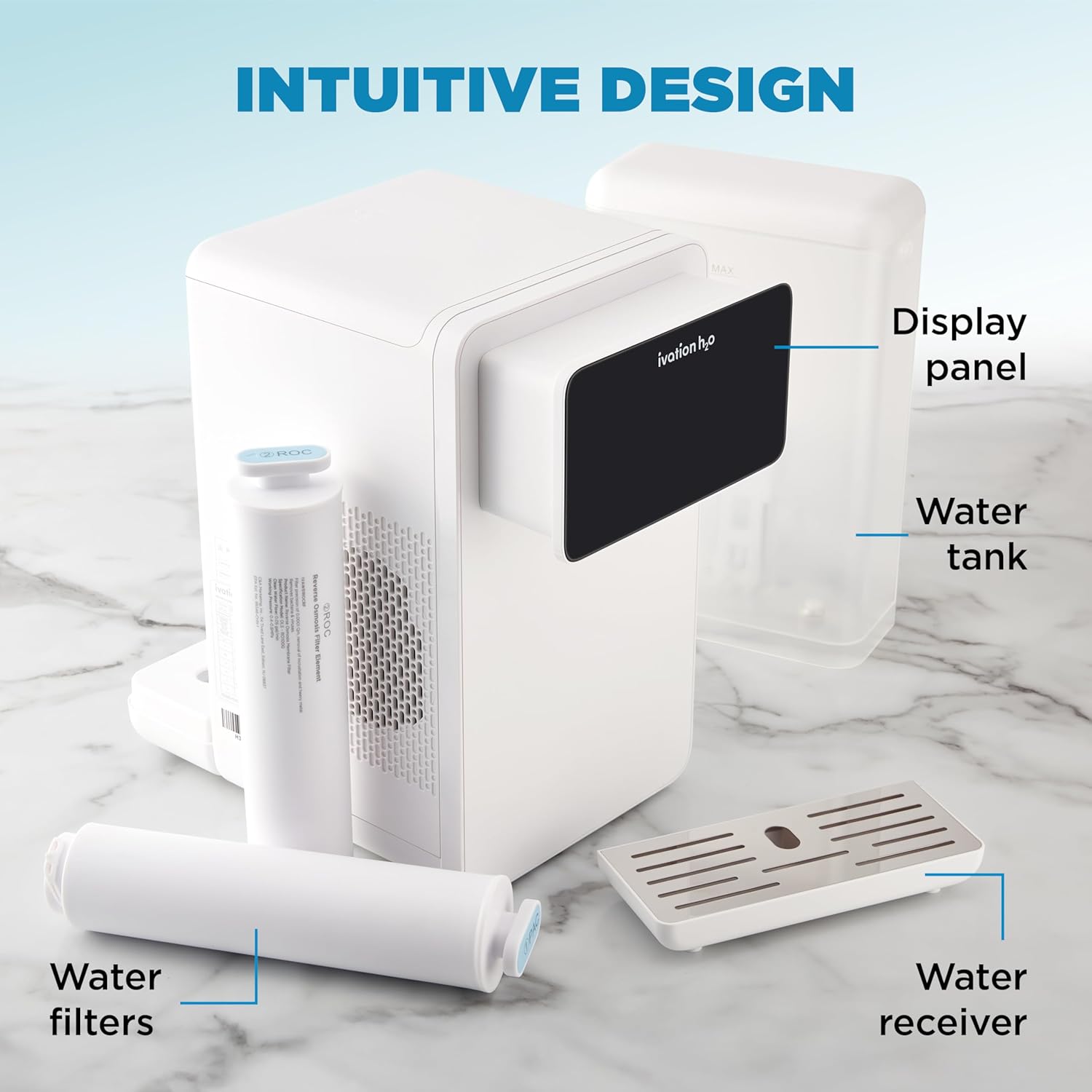 - INTUITIVE DIGITAL INTERFACE: Customize your hydration experience with the elegant backlit touch screen offering 6 temperature presets and 3 volume options. Perfect for anyone wanting a hot and cold reverse osmosis water system or a reverse osmosis water cooler in a stylish design.
