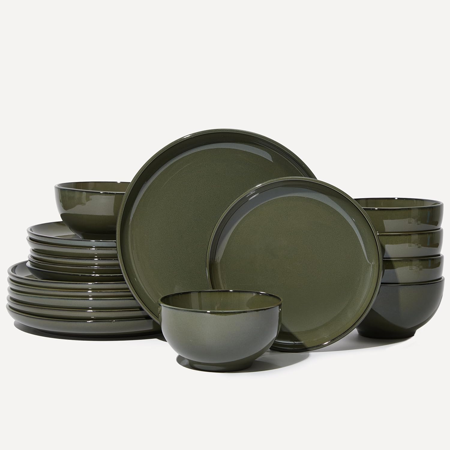 18 Piece Dinnerware Set for 6, Reactive Glaze Terracotta Plates and Bowls Set, Large Family-Sized Stoneware Dish Set for Gatherings, Chip and Scratch Resistant, Blackish Green