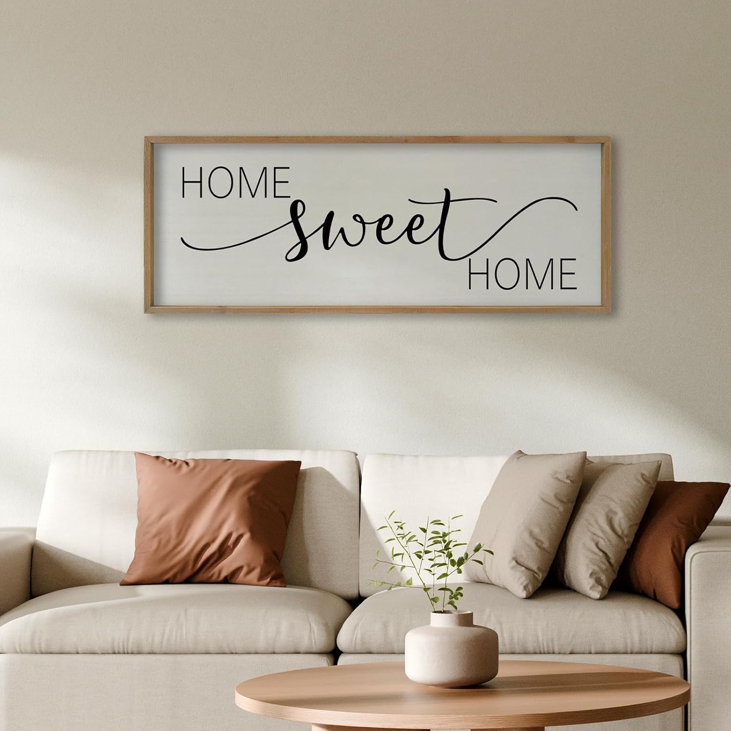 SRSZHIYUE Home Sweet Home Sign 40"x15" for Farmhouse Rustic Large Family Living Room Over Couch Modern Horizontal Wall Decor, Wood Framed Plaques Art Decorative (Wood)
