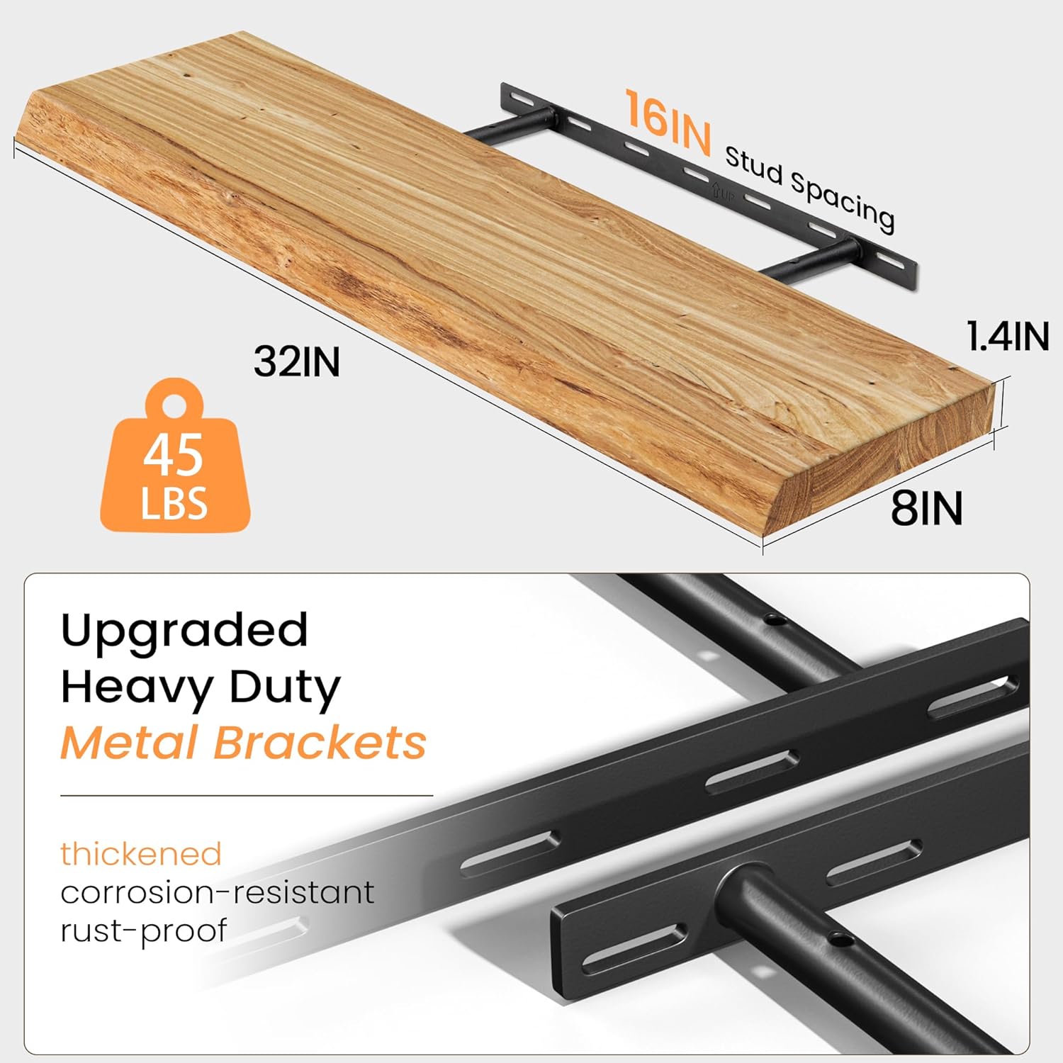 - Spacious & Stylish Storage: With a robust 1.4" thickness and 8" depth, these floating shelves provide expansive room for curated arrangements—from hardcover collections and framed memories to lush greenery. The shelves’ adaptable proportions effortlessly enhance kitchens, bathrooms, offices, or living areas