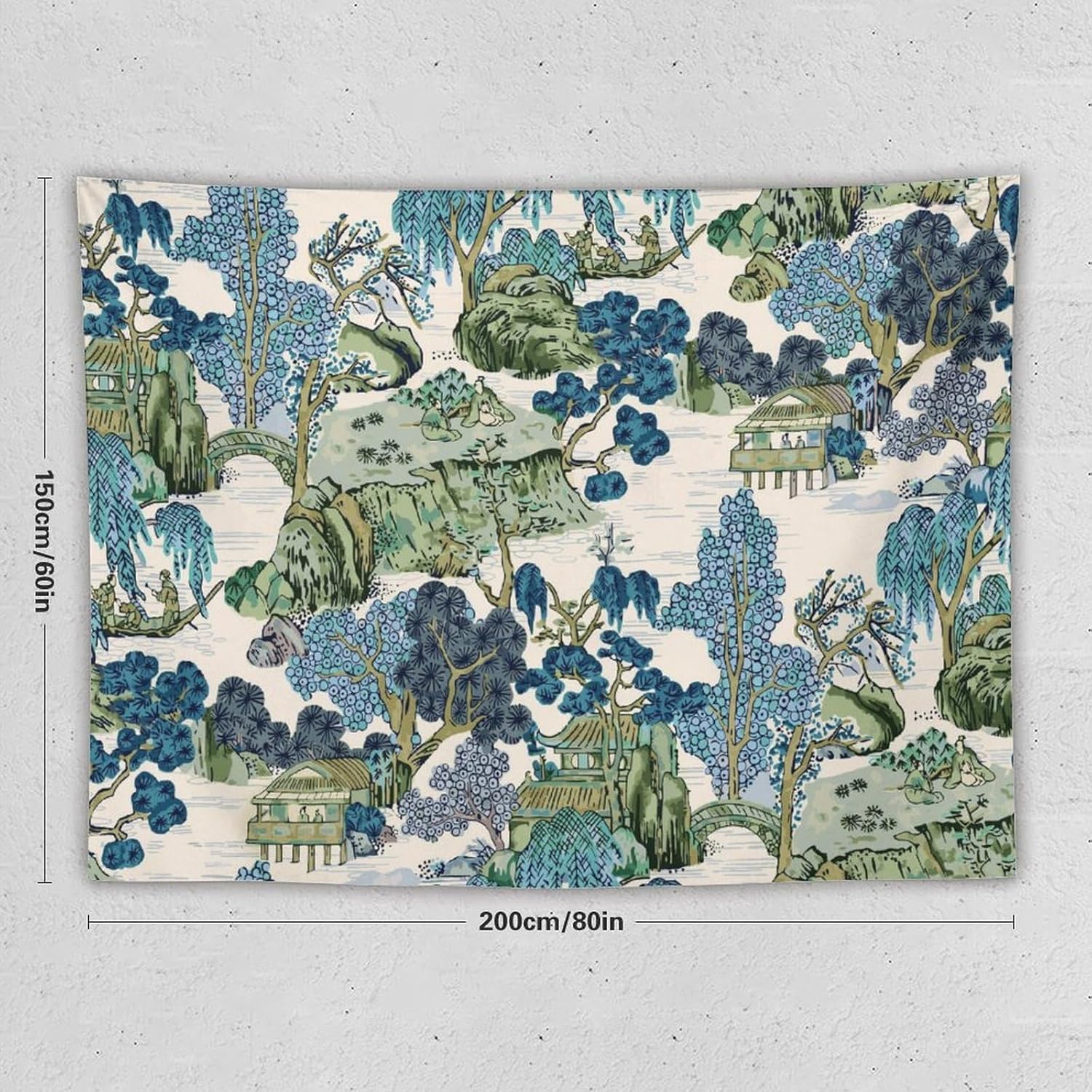 Chinoiserie Tapestry,Asian Watercolor Abstract Art Tapestry,Asian Japanese Wall Tapestry, Nature Landscape Tapestries for Bedroom Living Room Decor 80"x60"