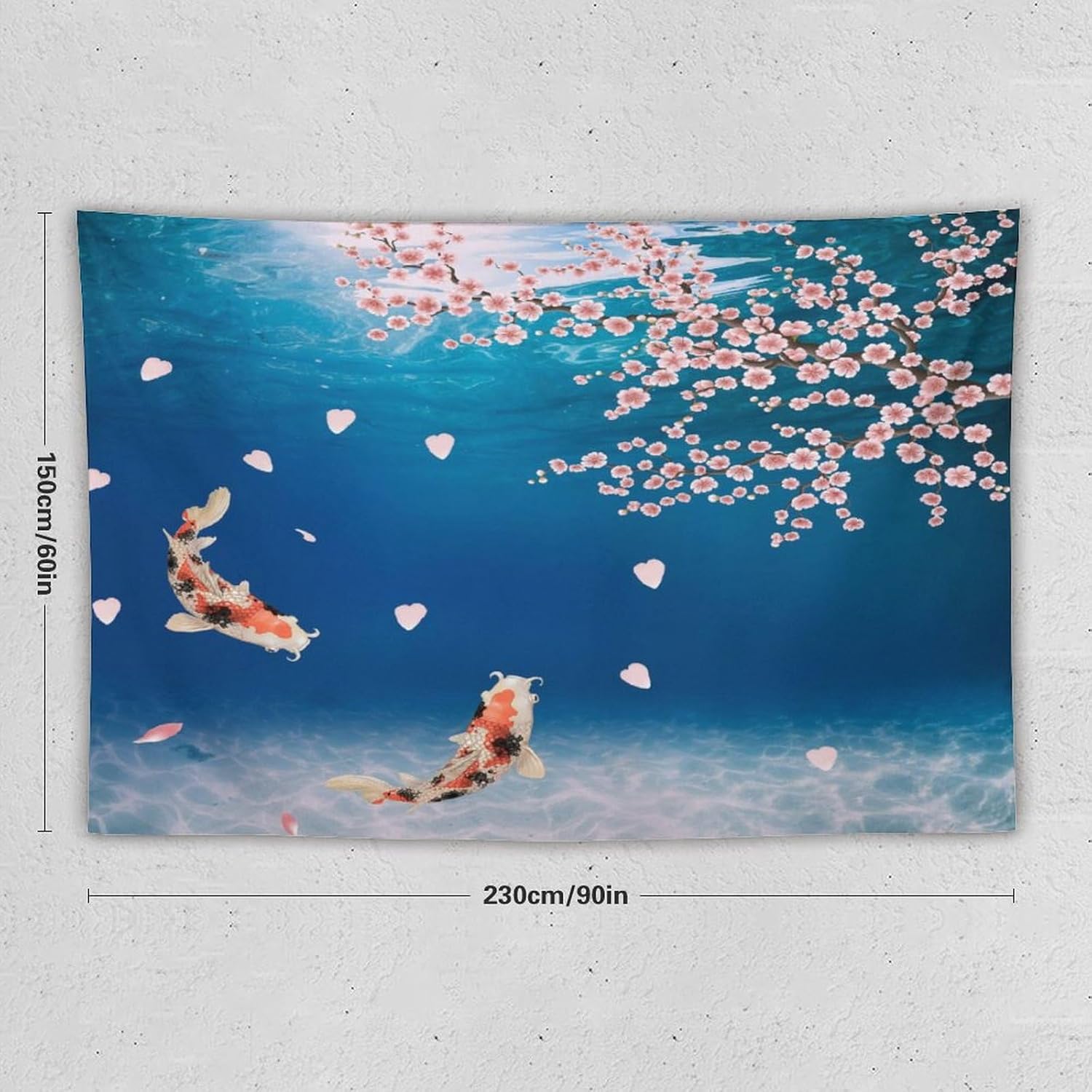 Japanese Koi Fish Tapestry, Cherry Blossoms Asian Oriental Blue Floral Branch Koi Fish Carp Tapestries Wall Hanging for Bedroom Living Room Office Decor 90"x60"