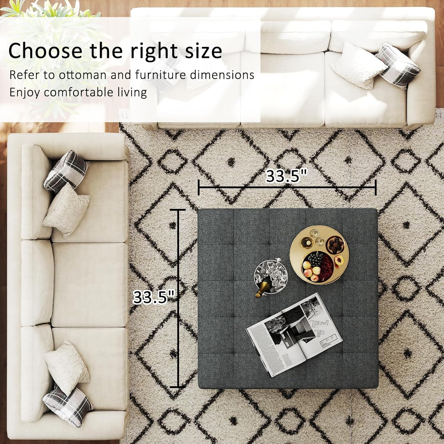 - Ottoman Coffee Table Size๏ผ33.5" Wx33.5" Dx18.5" H. Easy to bear 400 pounds