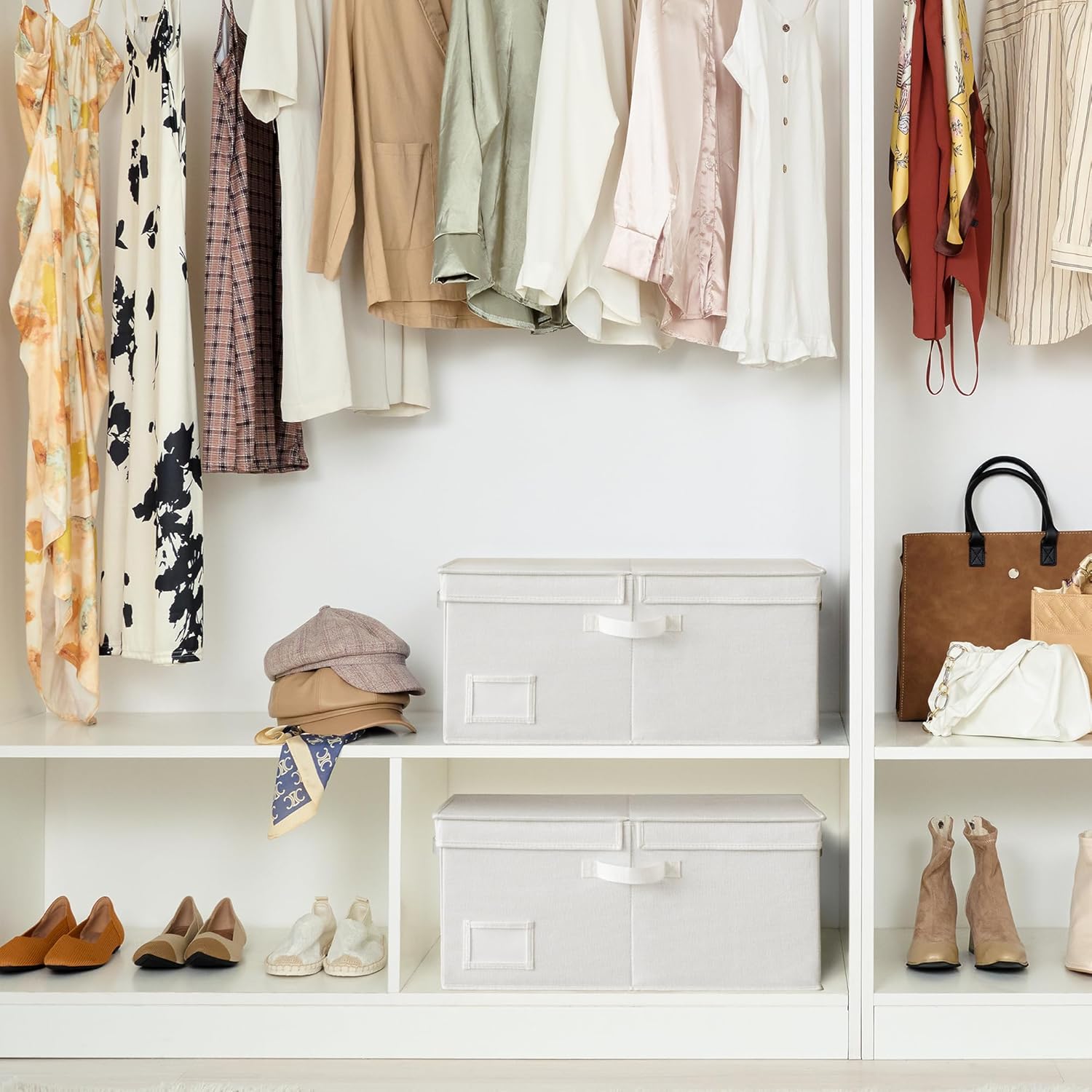 GRANNY SAYS Fabric Storage Bin with Lid, Decorative Storage Boxes, Basket for Shelves, Closet Storage Bins, Large Storage Bins for Clothing, Jumbo, Ivory, 2-Pack