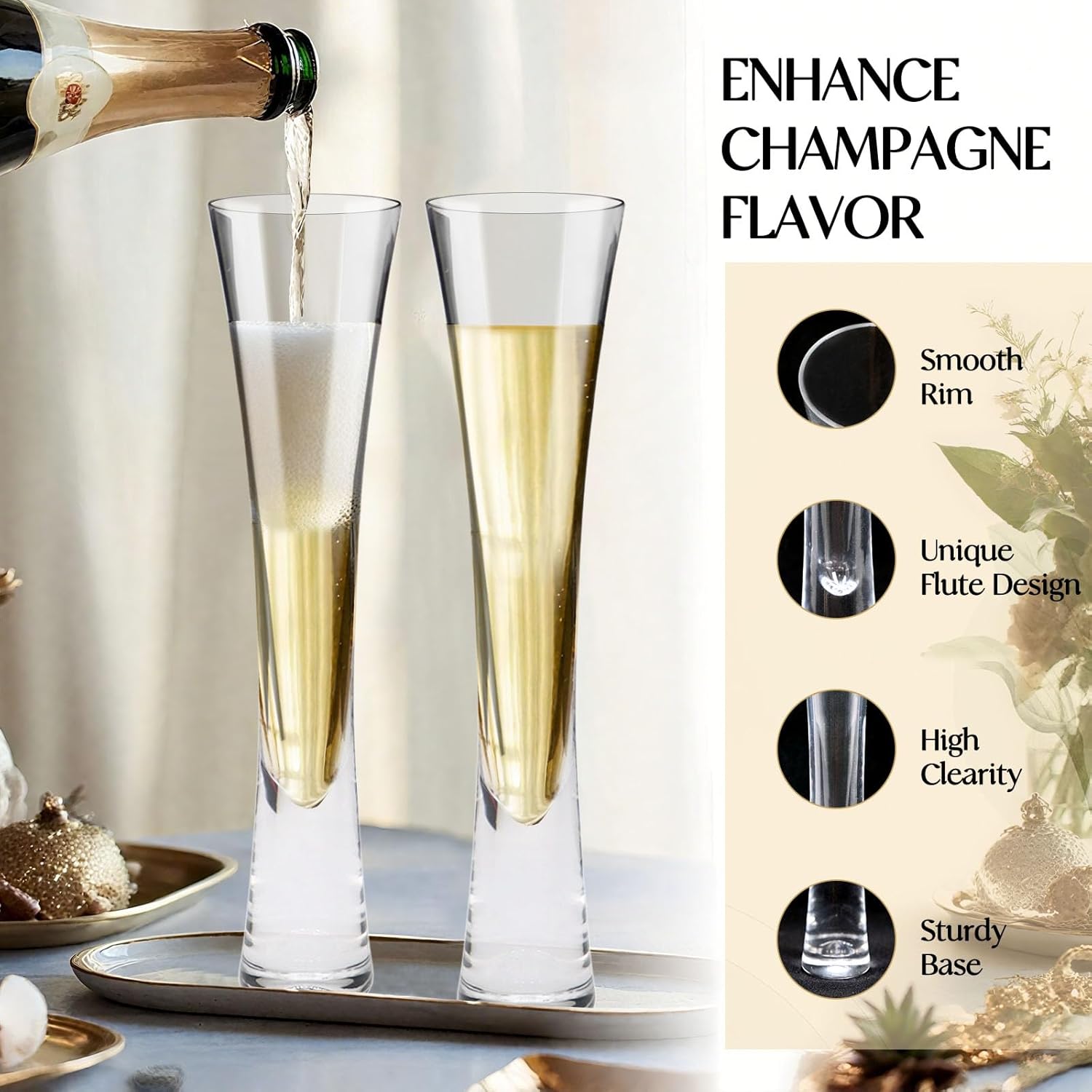 Champagne Flutes Set of 4, Hand Blown Crystal Champagne Glasses, Modern Unique Design, Lead-Free Prosecco Glasses, Elegant Toasting Glasses Gift for Wedding, Anniversary, Birthday, Christmas