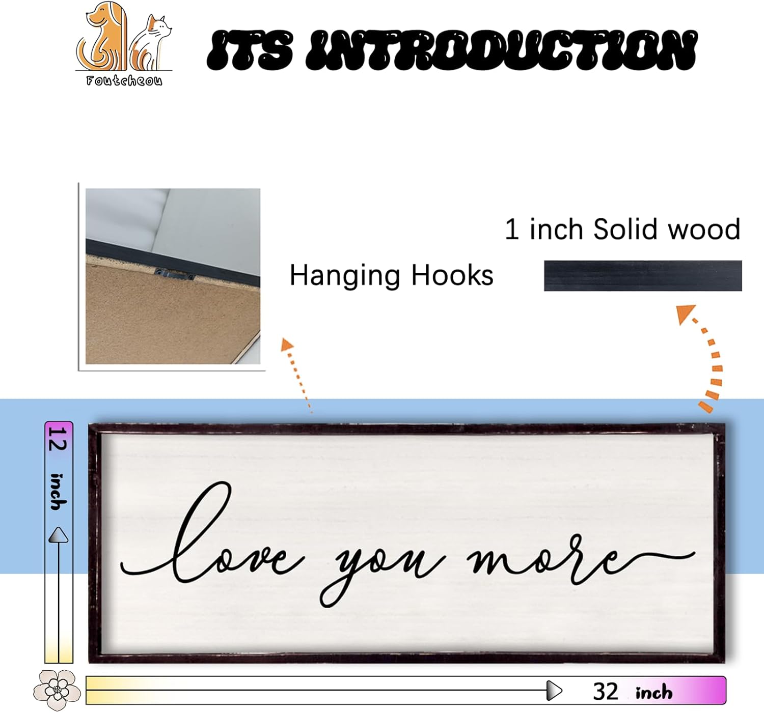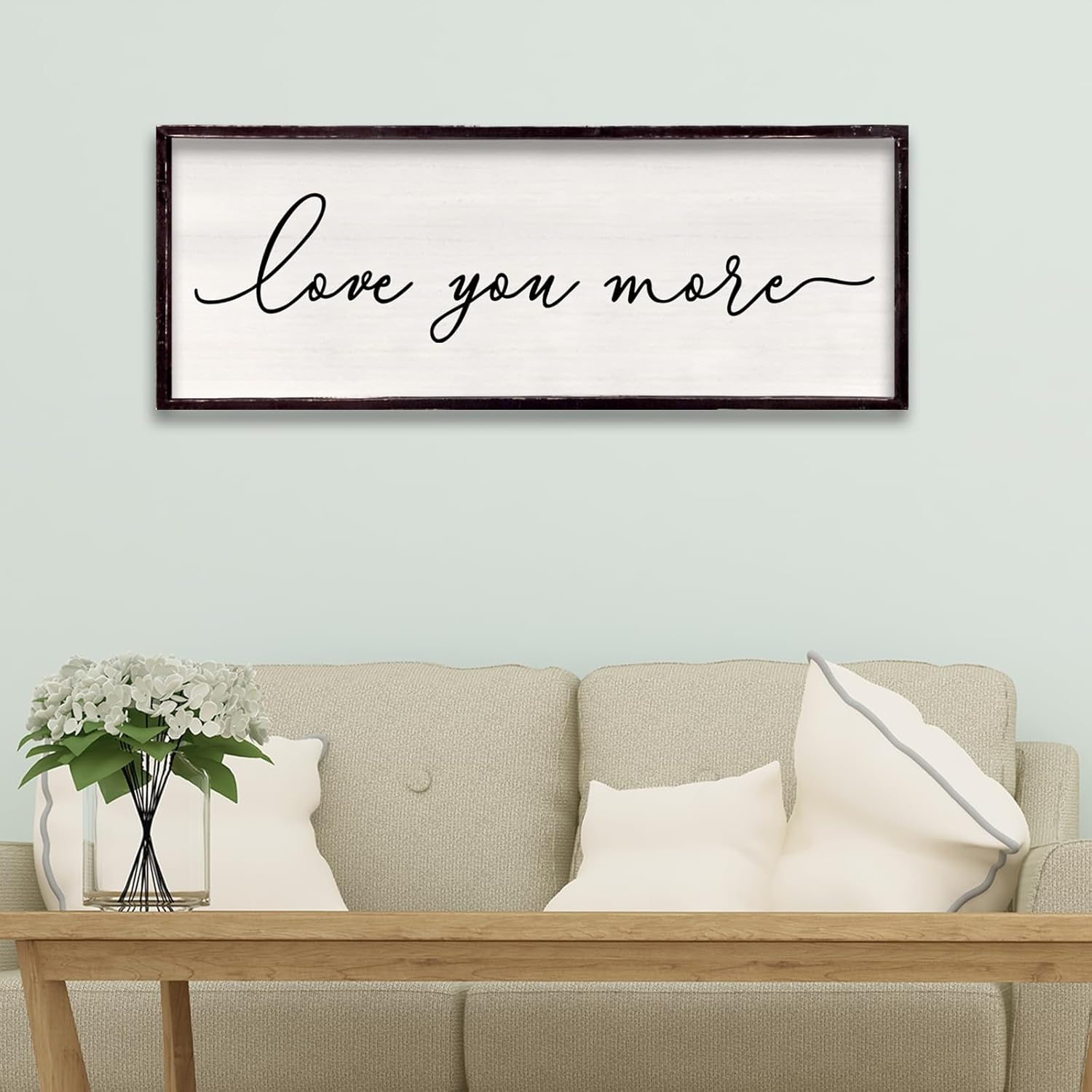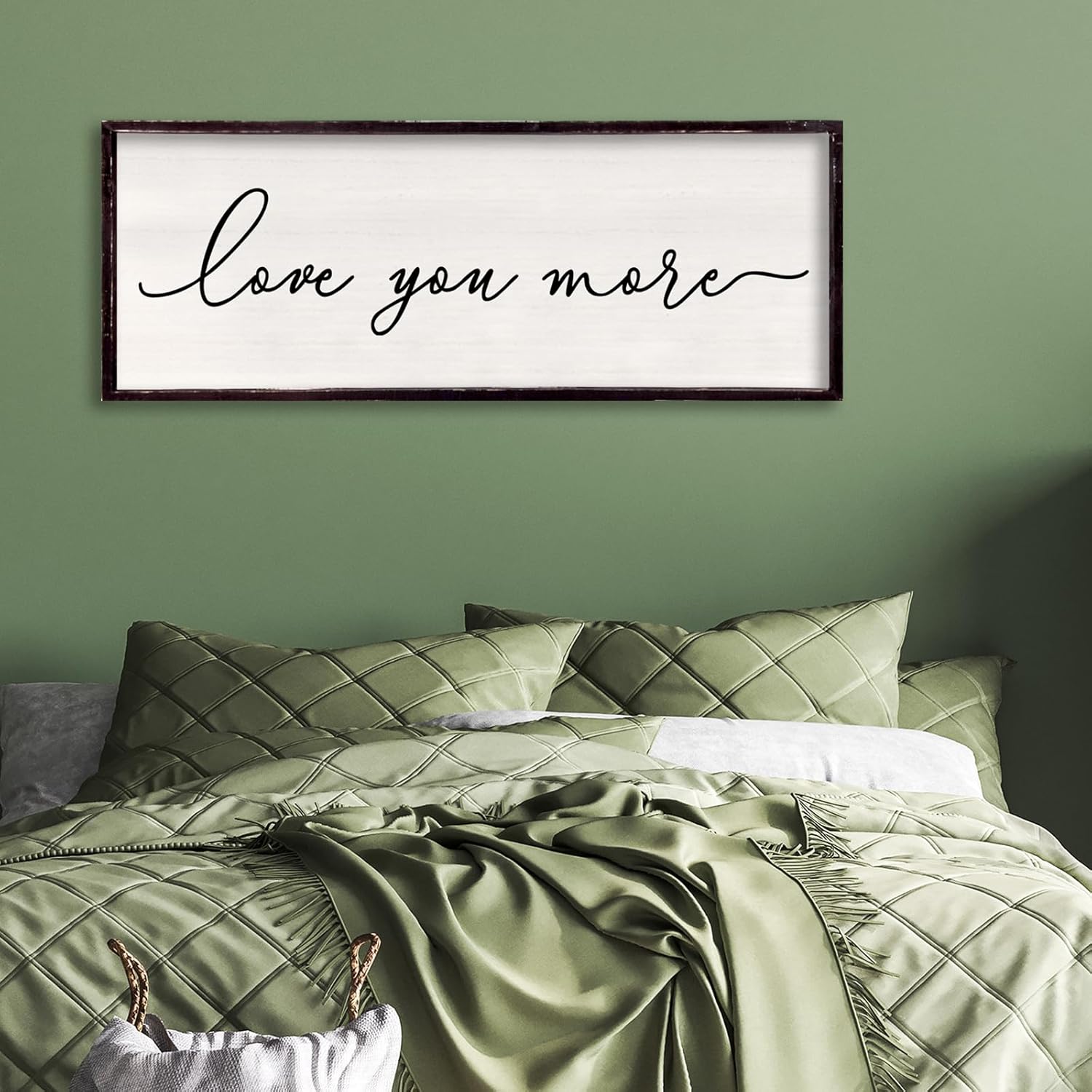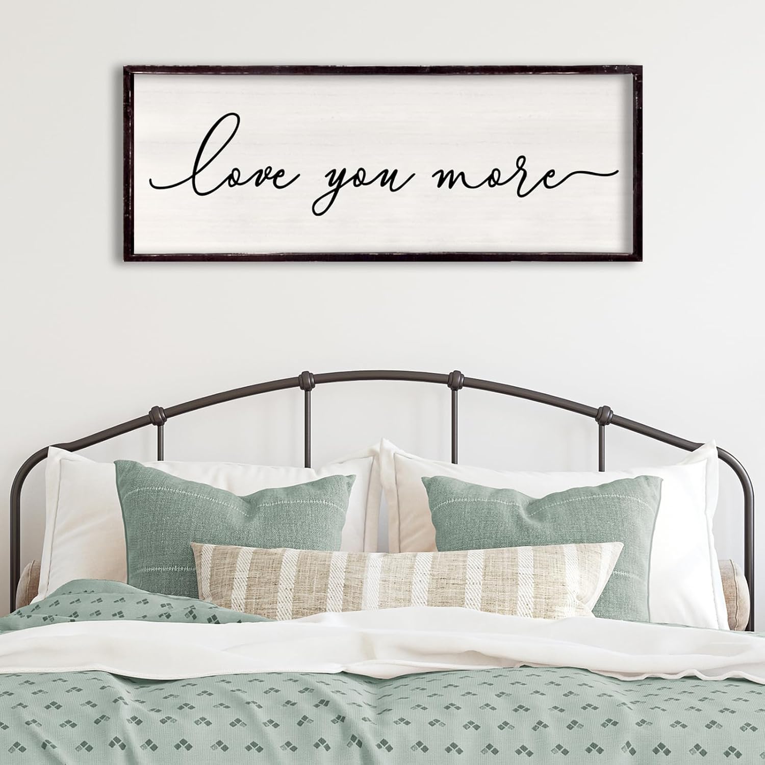 Love You More Above Bed Wall Decor Sign 32"×12" for Master Bedroom Over Bed Large Simple Wood Framed Hanging Wall Art (Black)