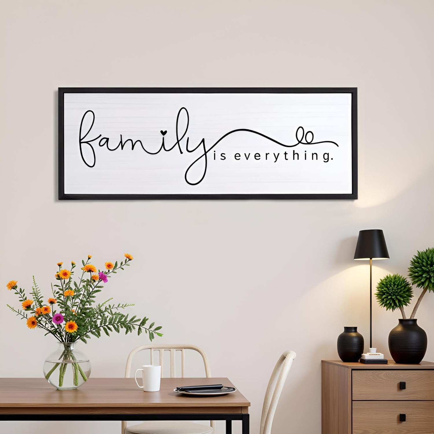 Foutcheou Family is Everything Wall Decor Sign 32"×12" for Family Living Room Large Wood Framed Wall Art Hanging Decoration (Black)