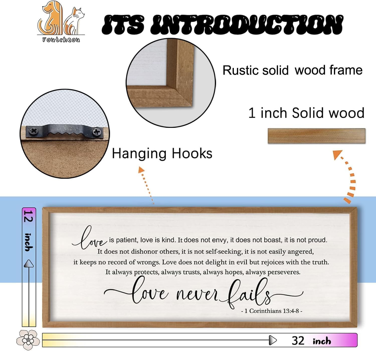 Love Is Patient Love Is Kind Wall Decor Art 32×12 Inch (Wood)