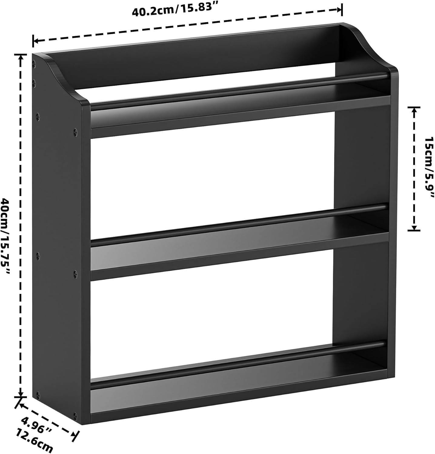 - FIX THE SPICE MESS: Tired of spice clutter? Our 3-tier bamboo rack solves it. Sized 15.83"W x 4.96"D x 15.75"H (5.9" per tier), it saves counter space while triples storage. With 4.96" depth, it fits spices to cans. Each shelf holds 8+ jars; the top tier is for tall bottles. Front guardrails keep jars safe. Get an organized kitchen with this handy rack