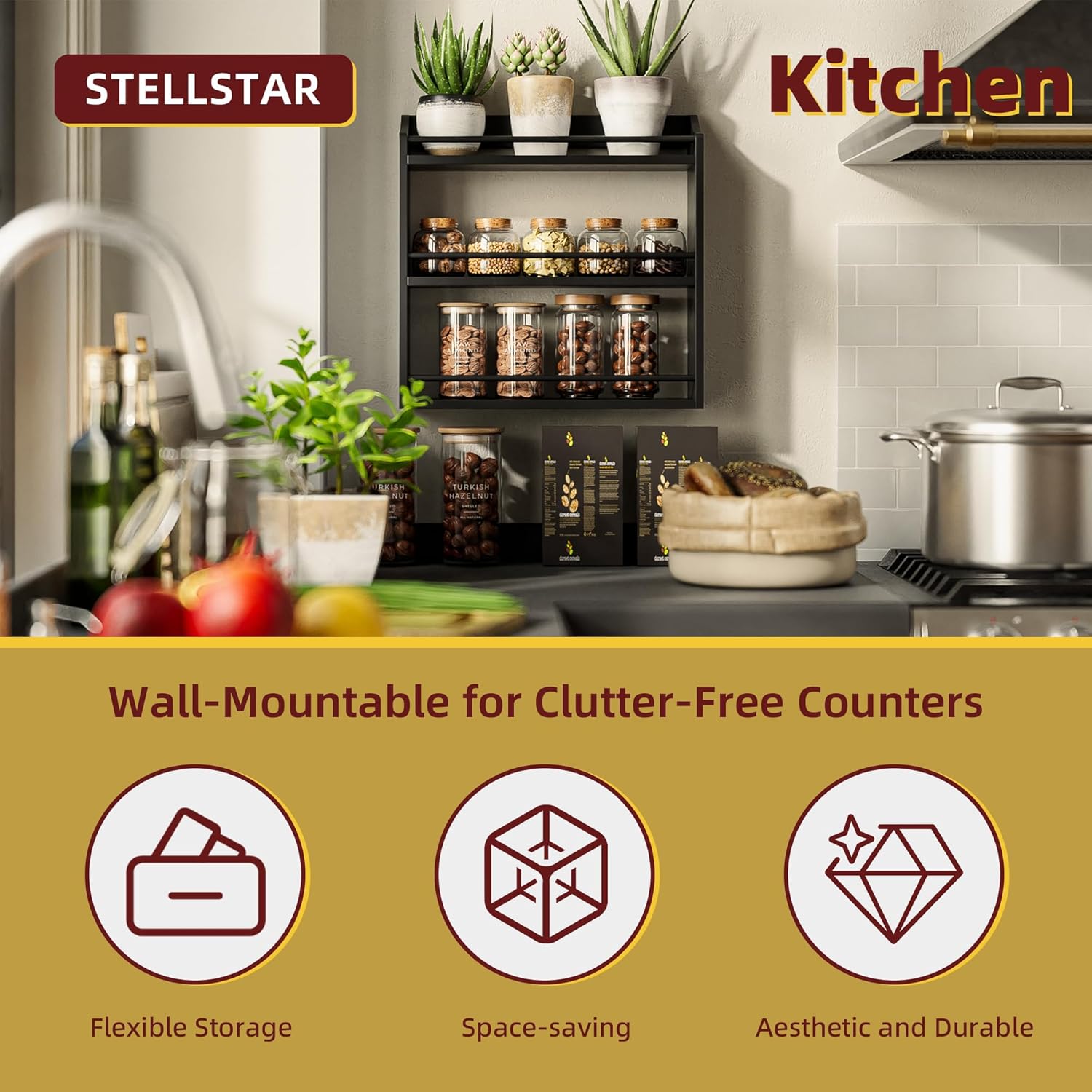 - SIMPLE, ELEGANT & VERSATILE: This rack is both a stunner and a workhorse. Its minimalist design oozes elegance, blending seamlessly with any decor to add warmth. But it’s more than a spice rack! Use it to organize your coffee bar, declutter your bathroom, or neatly stack snacks in mason jars. Wherever you place it—kitchen, pantry, bathroom—it transforms chaos into a tidy, stylish space