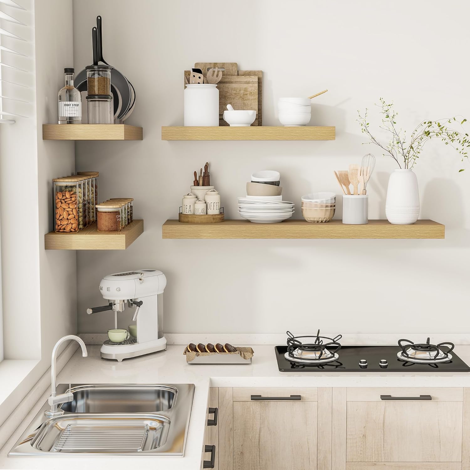 - Sturdy and Easy to install: Includes all necessary hardware to make these floating shelves extremely easy to assemble. We also provide you with detailed install instructions for you to install the shelves in a few minutes.If youโre looking for an easy way to add some functional style to your room, It highly recommend definitely recommend giving these a try!