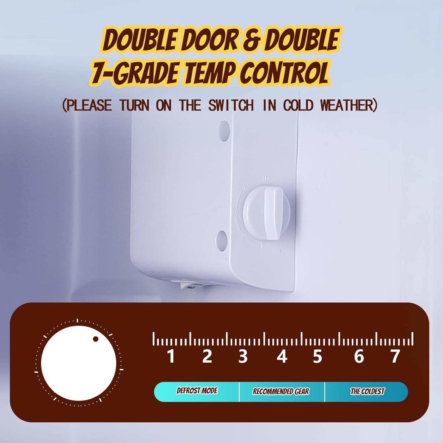 - Temperture Control: The small refrigerator has a traditional internal gear setting that you turn to change the temperature control range. We recommend that it can be set to 5. The higher the number, the lower the temperature. Equipped with R600a compressor, it is able to cool efficiently and quickly.