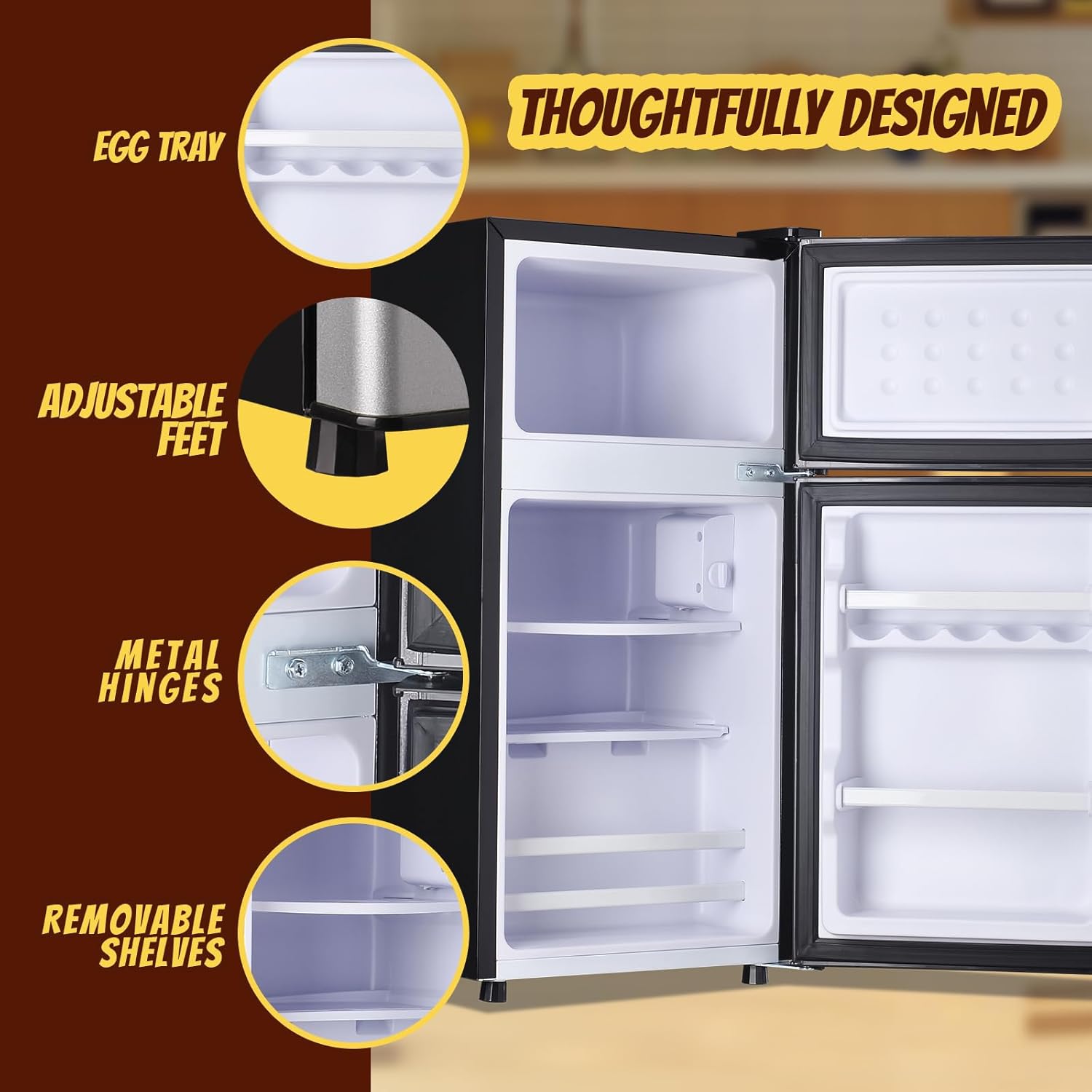 Mini Fridge with Freezer Small Refrigerator Double Door Dorm Fridge for Single Removable Shelves for Bedroom, Office, Dorm Black