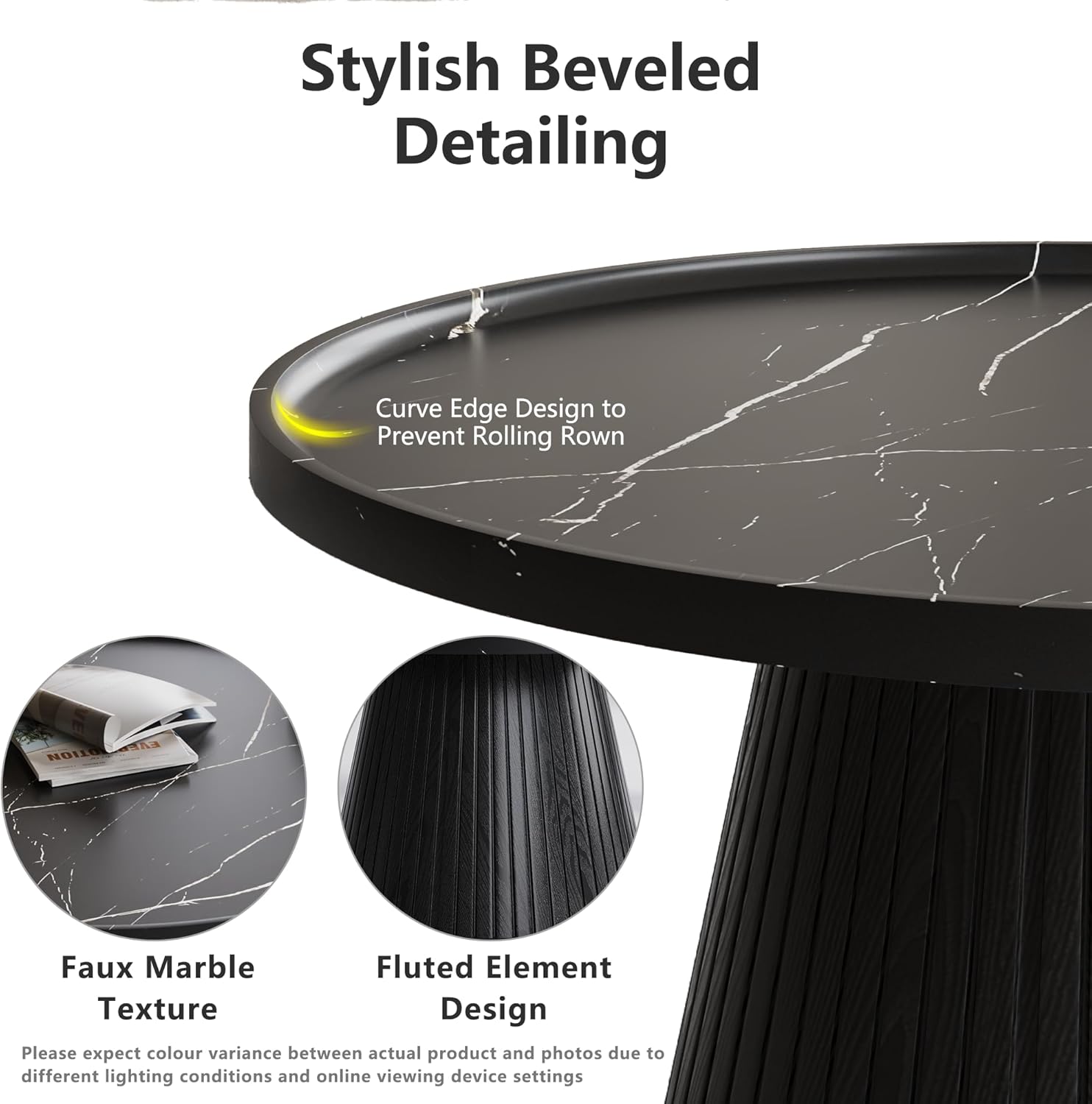 win2win Nesting Coffee Table Set of 2, Modern Coffee Table with Marble Veneer, Fluted Round Tea Table and End Table Set, Minimalist Center Tables for Living Room, Office, Black