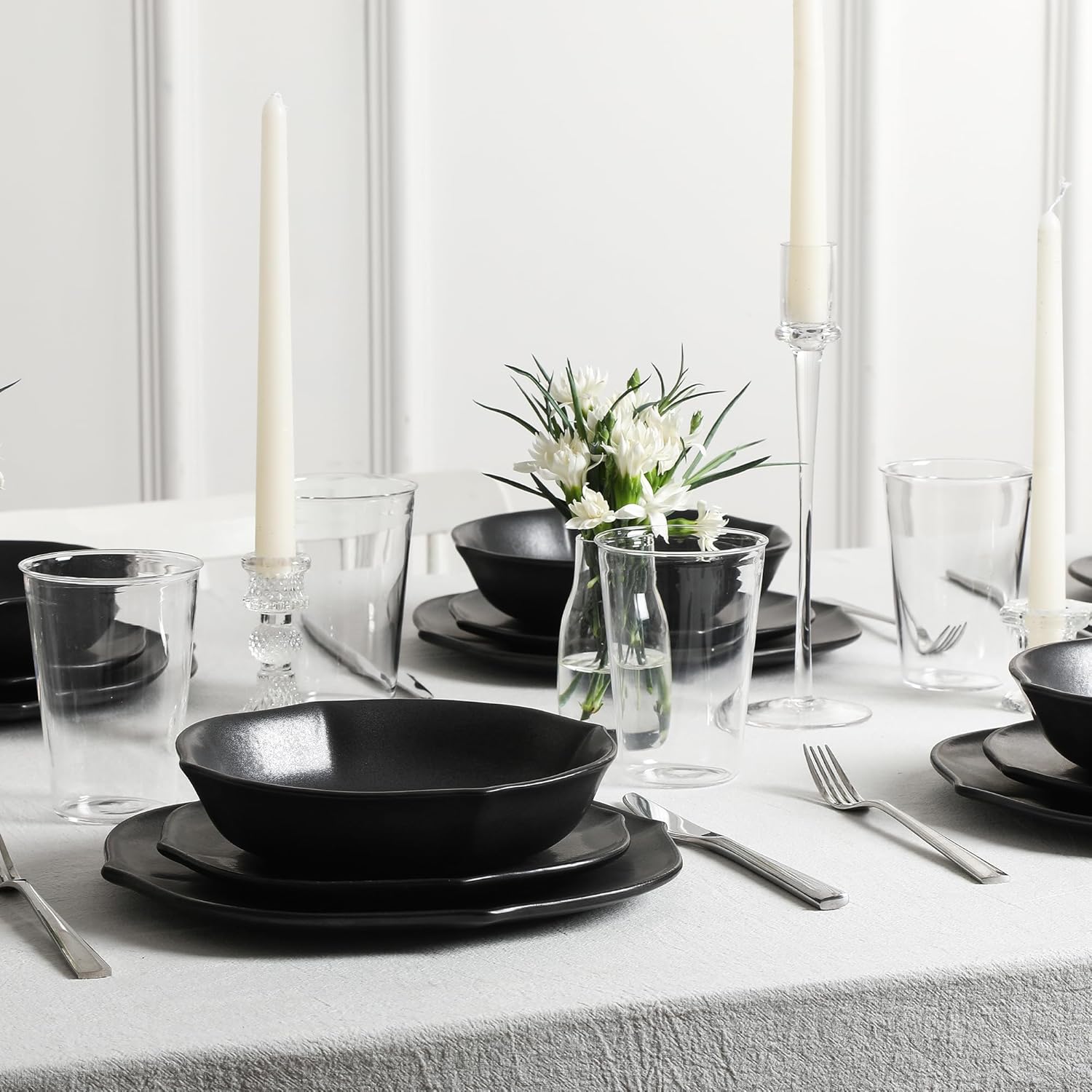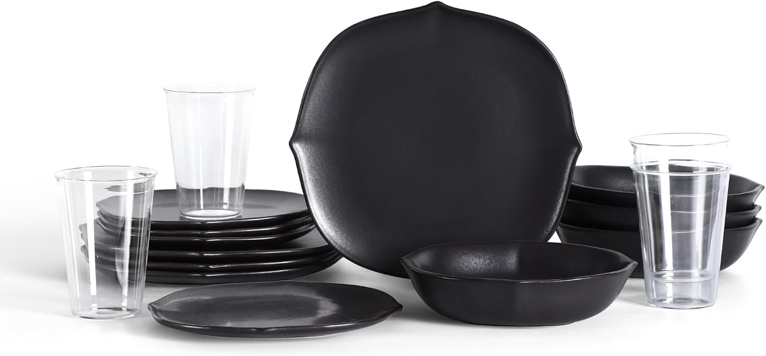 Stone Lain Baskerville 16-Piece Dinnerware Set Stoneware, Borosilicate Glass, Black