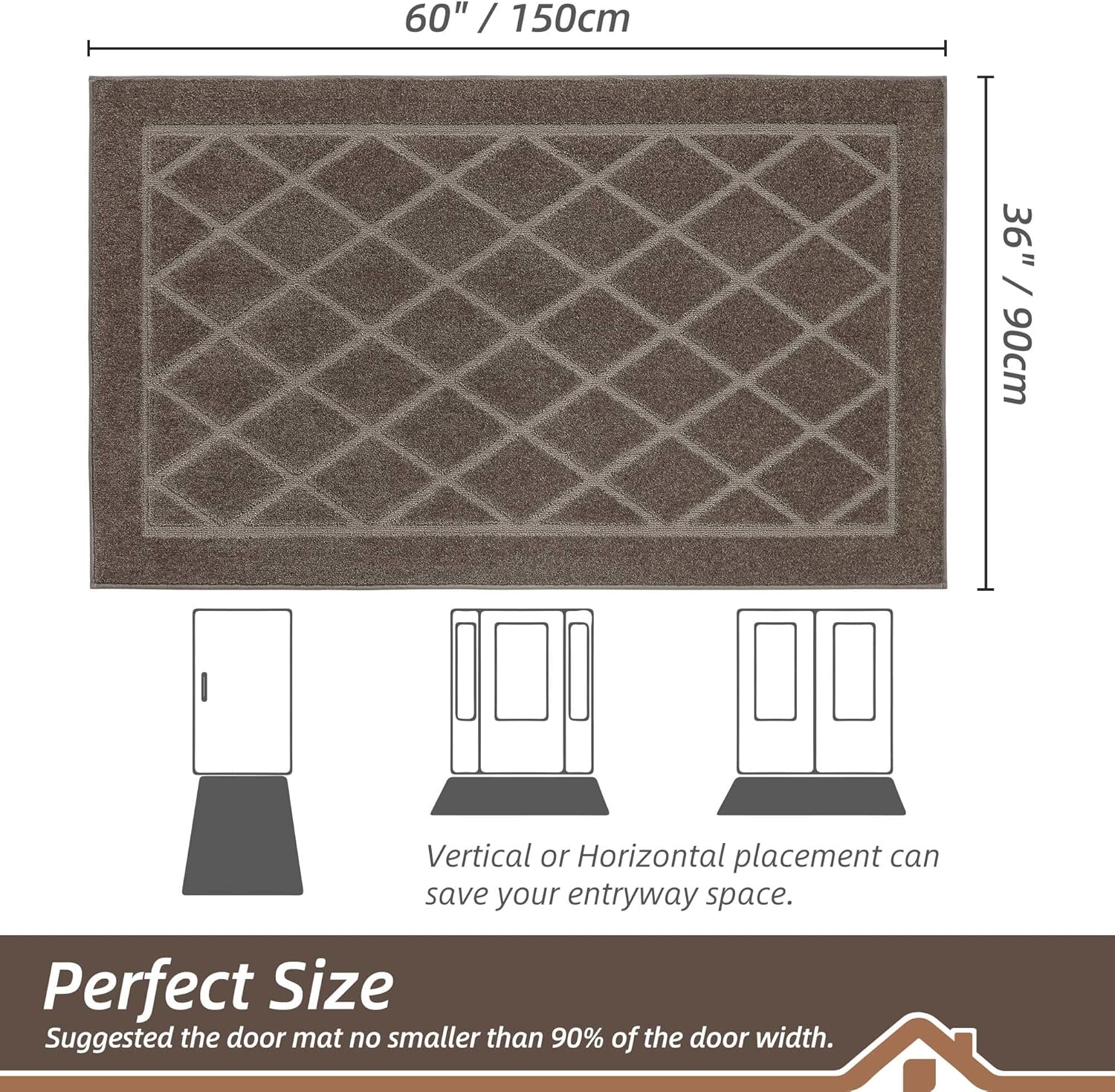 - Stylish and Low Profile Design: Fashionable geometric patterns are suitable for most kinds of home dรฉcor. Our doormats measure 36" x 60" x 0.45", low-profile design and reinforced overlock edges to ensure that doors won't get stuck or the door rug go curling. Note: Please confirm the height of the door gap before purchasing